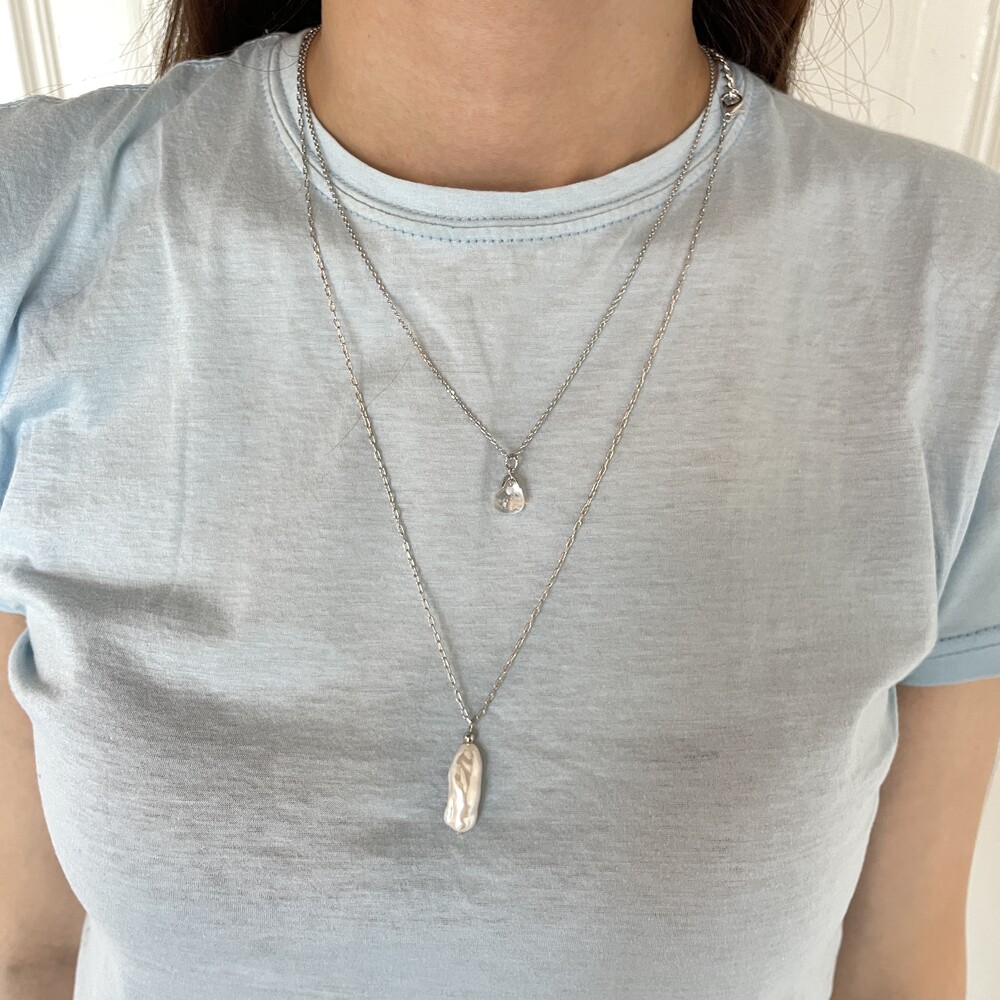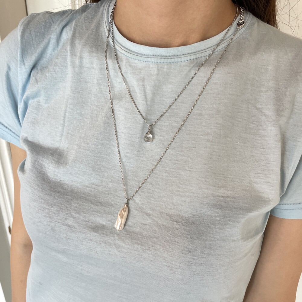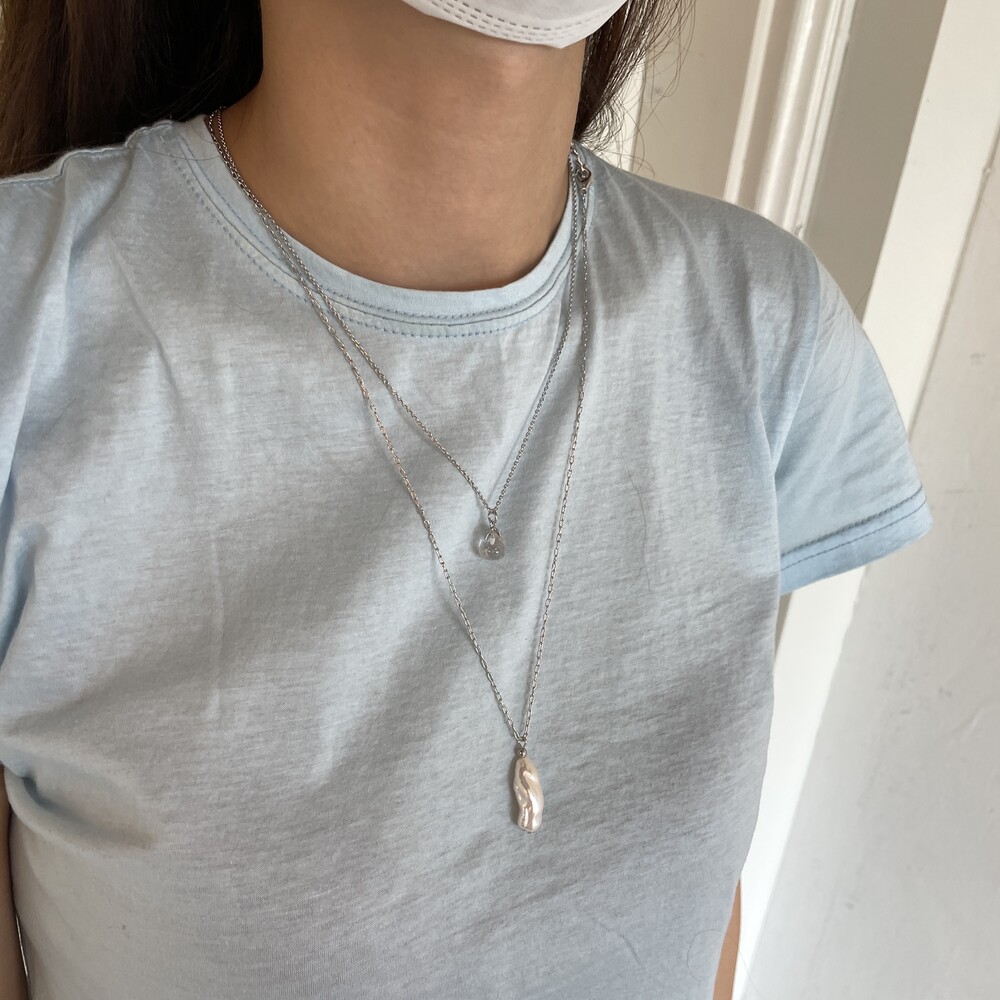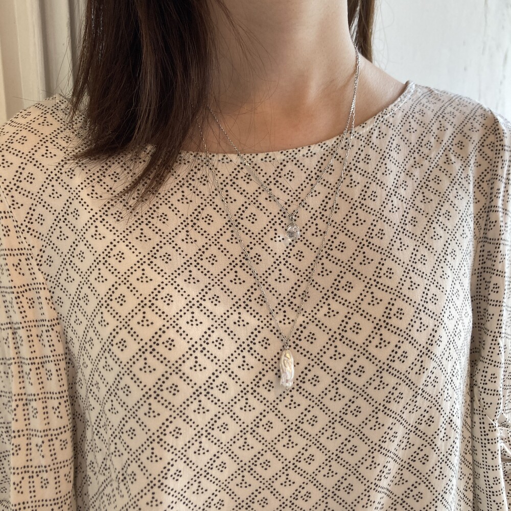 이번에는 레이어드용으로도 단품으로도 착용하기 좋은 슬림하고 롱 스타일의 Knobbly Long Pearl Necklace를 소개합니다. 펜던트는 담수진주로 청순하고 여성스러운 느낌을 줍니다. 체인 자체가 과하게 굵지 않은 미들 체인으로 나와서 다른 실버 체인 목걸이와 함께 레이어드 하기에도 적합합니다!