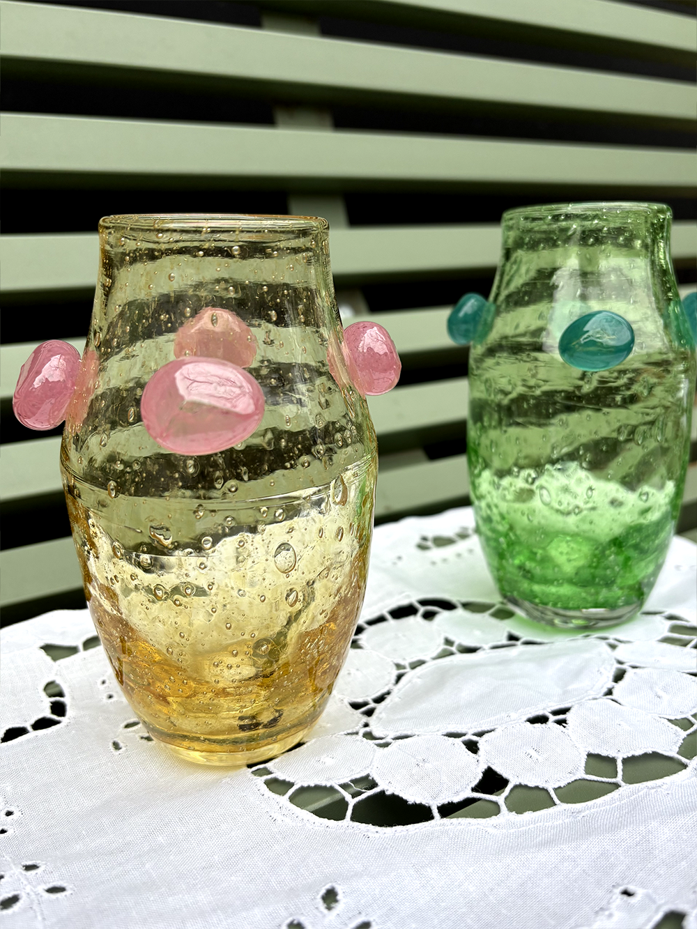 • Set of small bubble glass dishes made in Provence. Ideal for putting salt and pepper on the table.