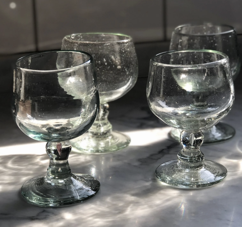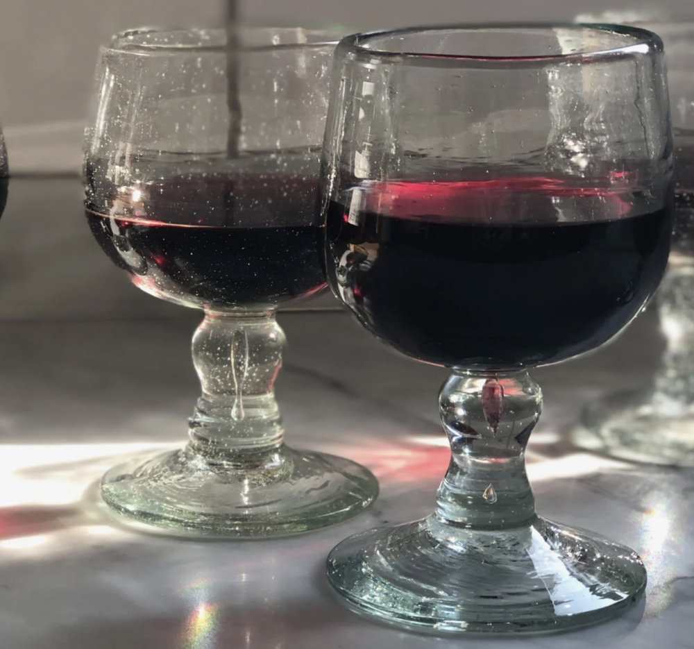 조금 더 길이가 짧고 불룩하여 레드 와인을 담기에 적합한 와인잔입니다.