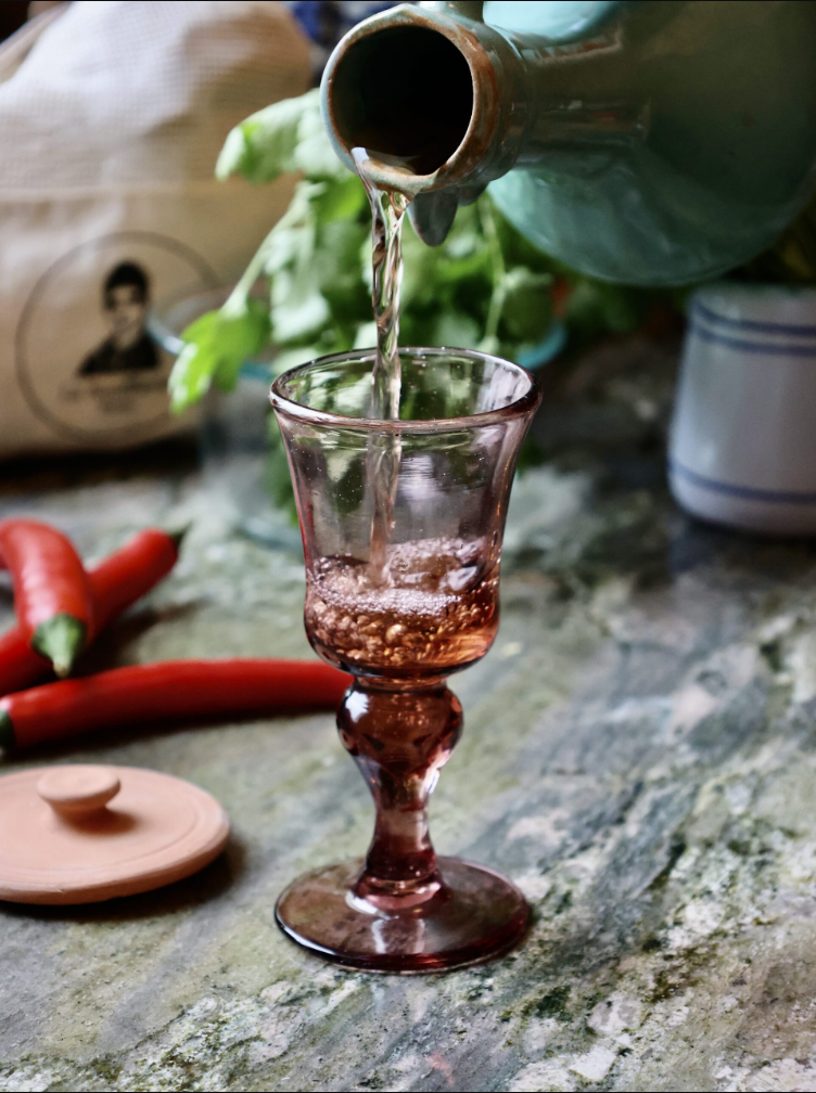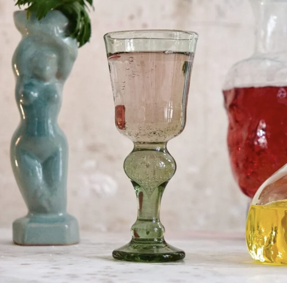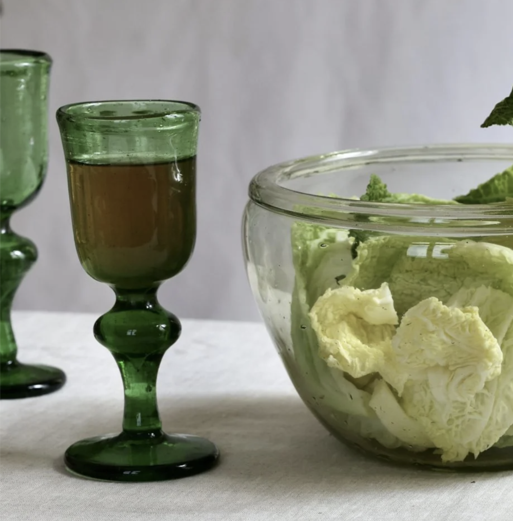 화이트 와인이 담기면 더 기존 유리 제품의 색상과 어우러져 오묘한 컬러감을 보입니다.