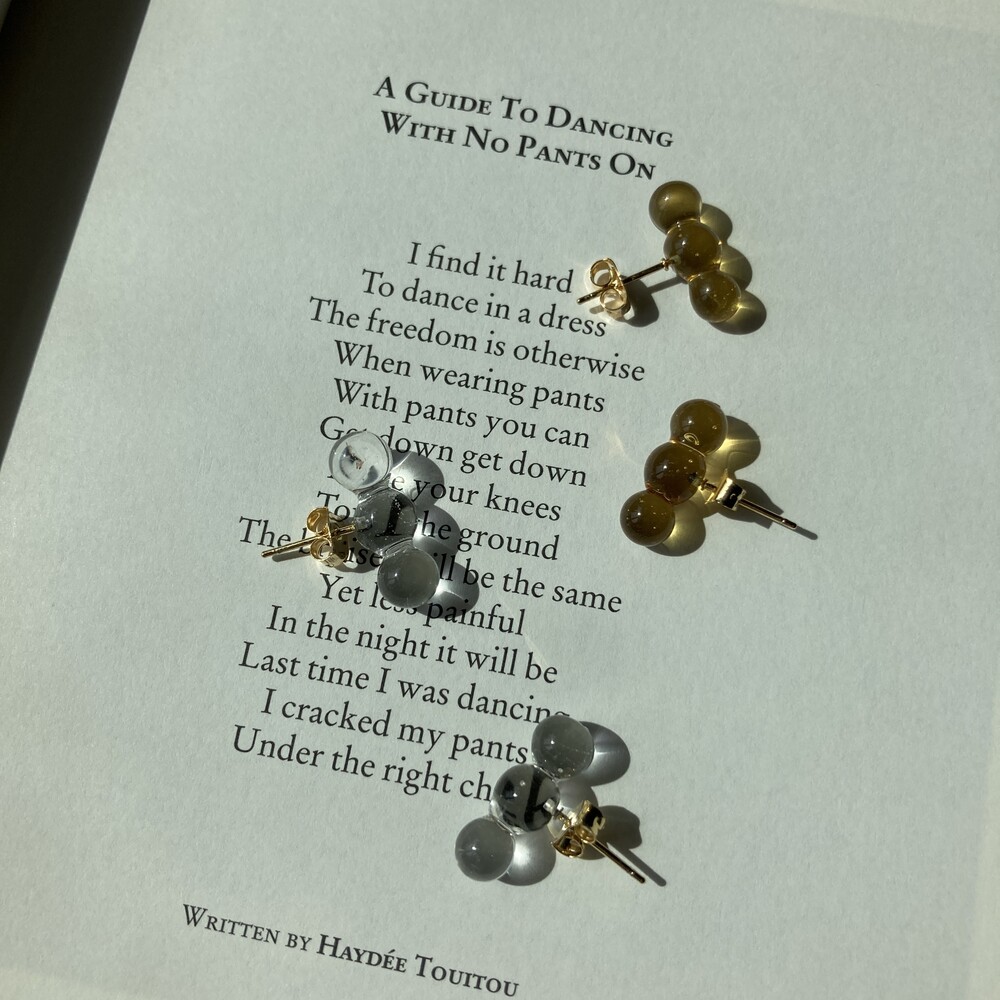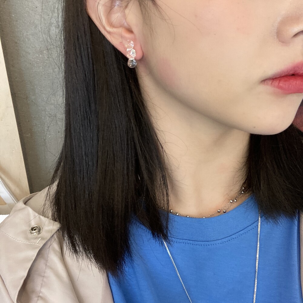 일체형태의 귀엽고 여리여리한 느낌의 투명 귀걸이 Larva Earring를 소개합니다.
