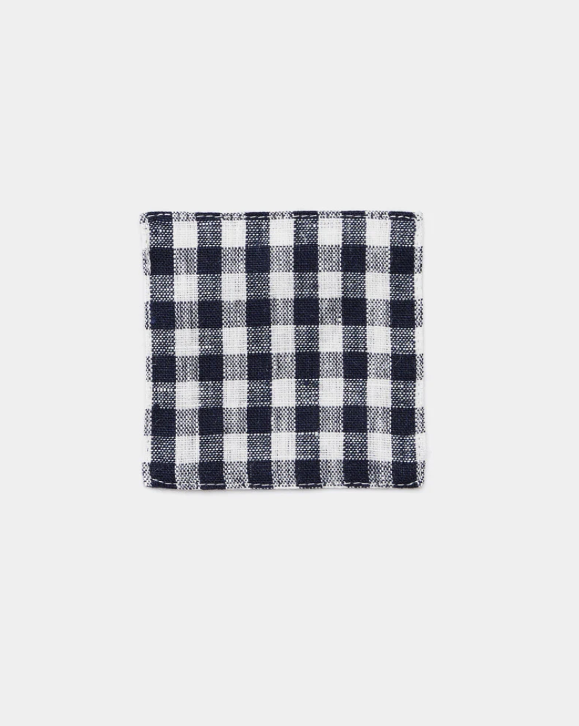 Fog Linen Work - Linen Coaster - Navy White Check