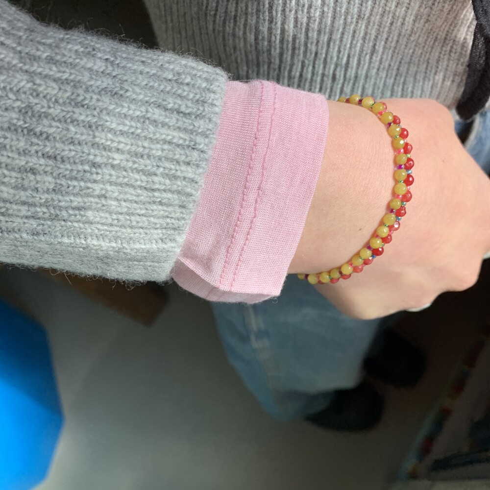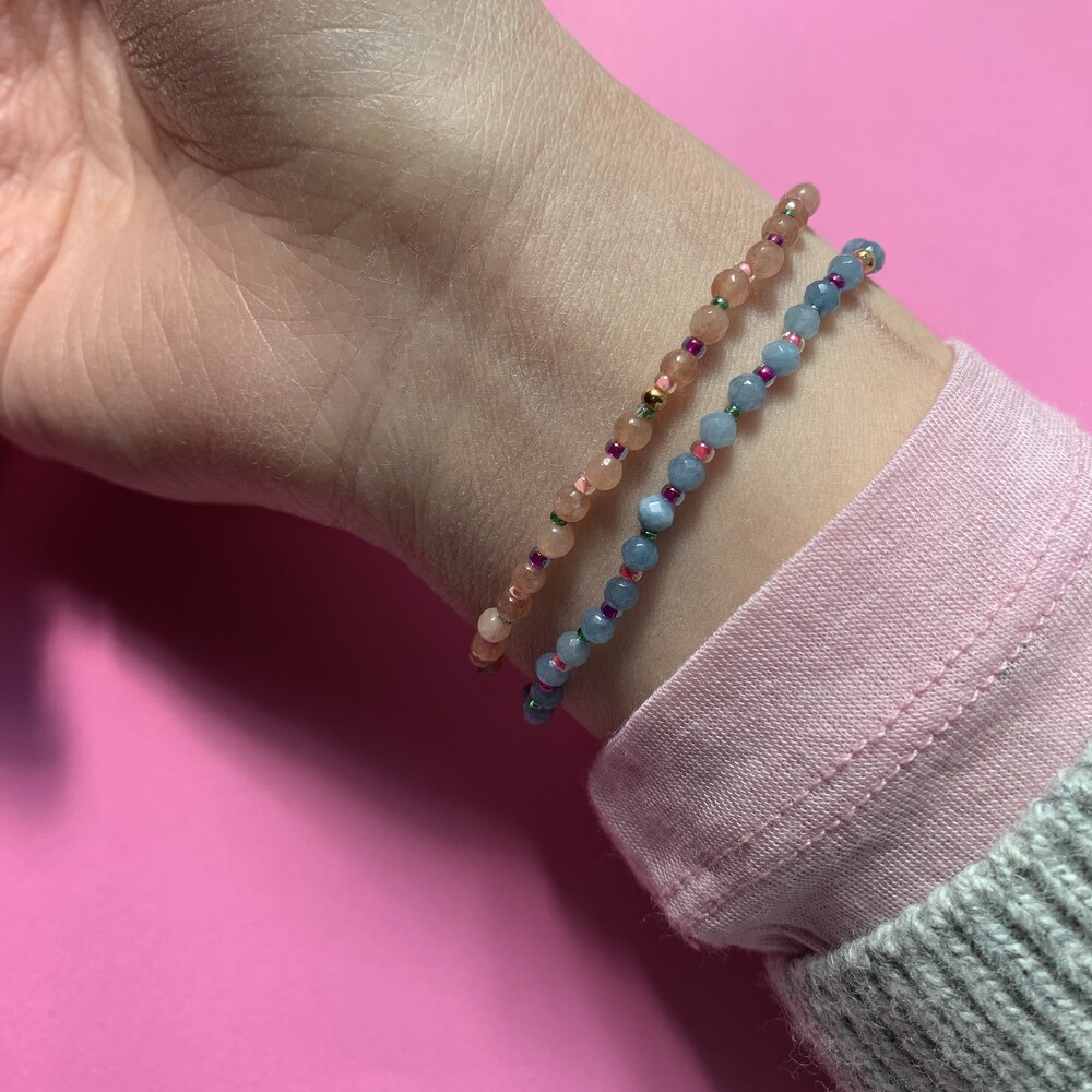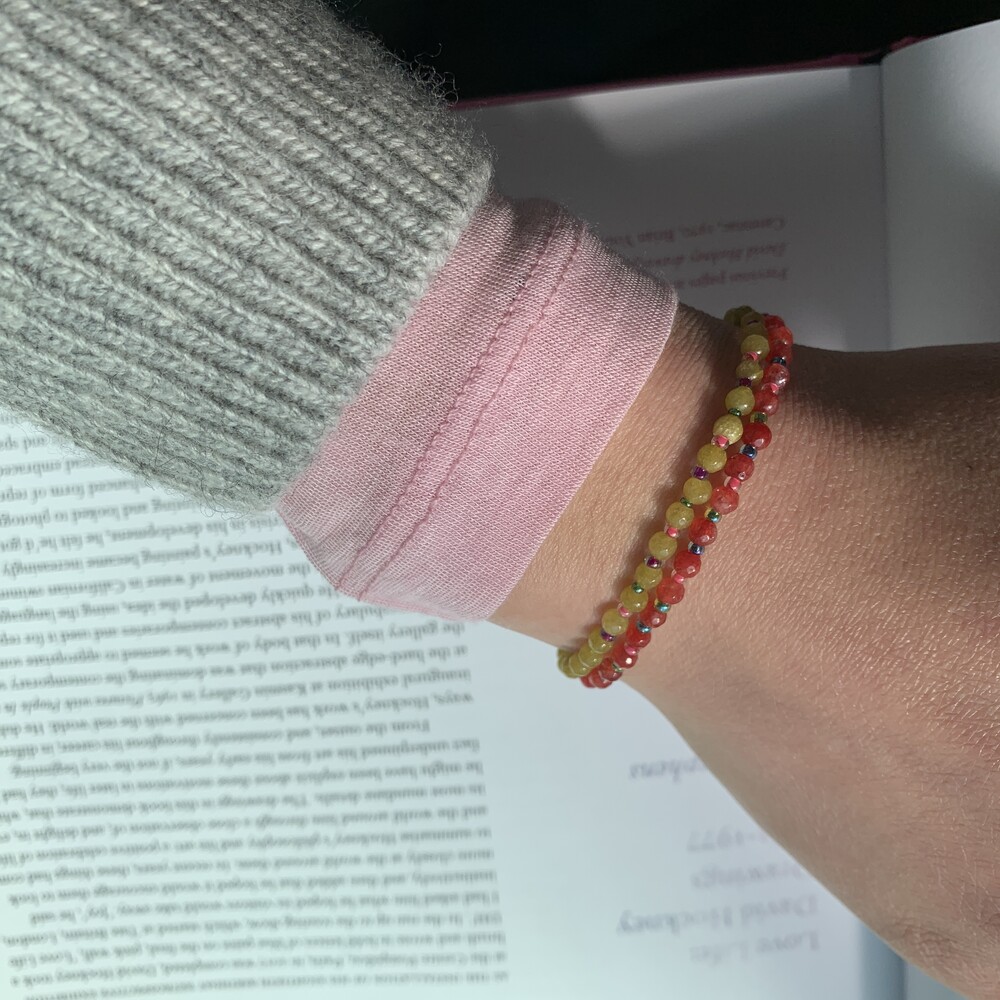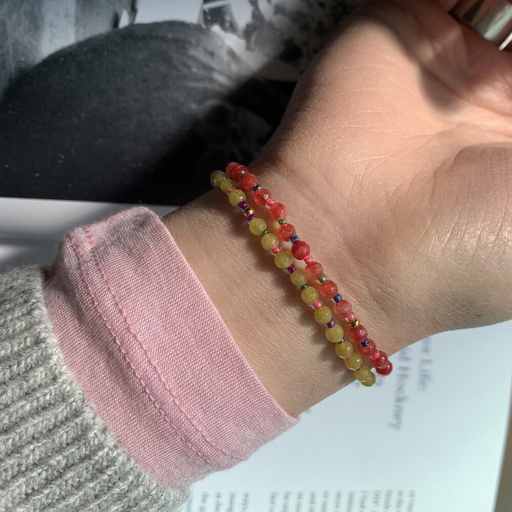 봄, 여름과 잘 어울리는 팝한 색감과 뮤트한 색감으로 톤에 구애 받지 않고 잘 어우러지는 팔찌입니다.