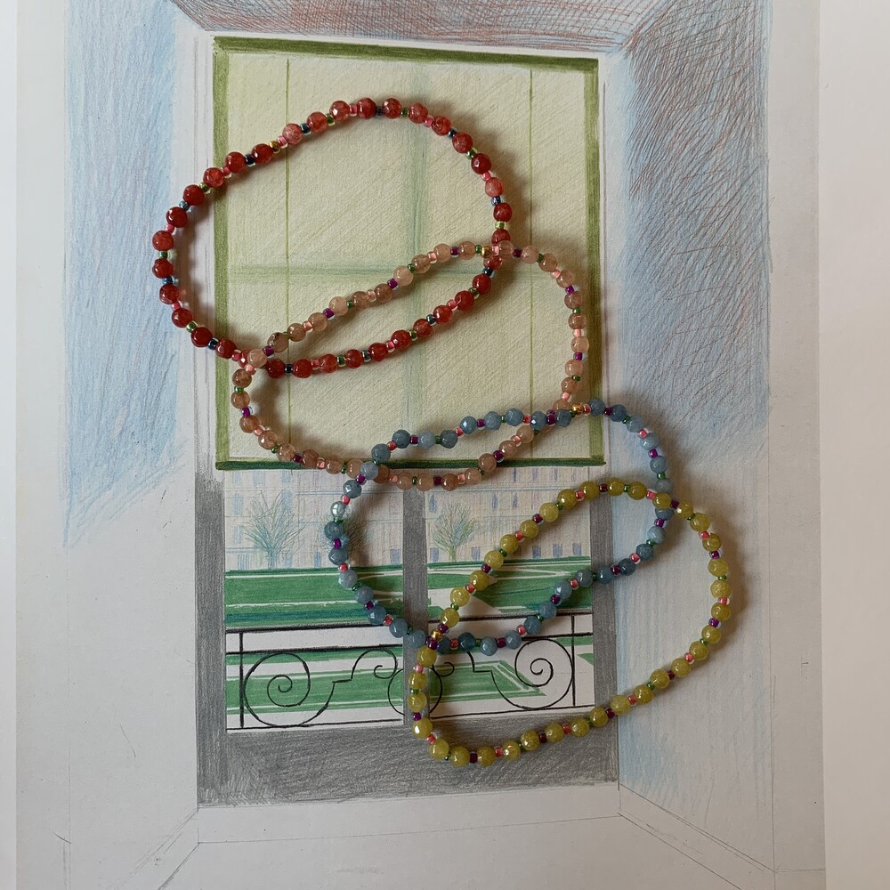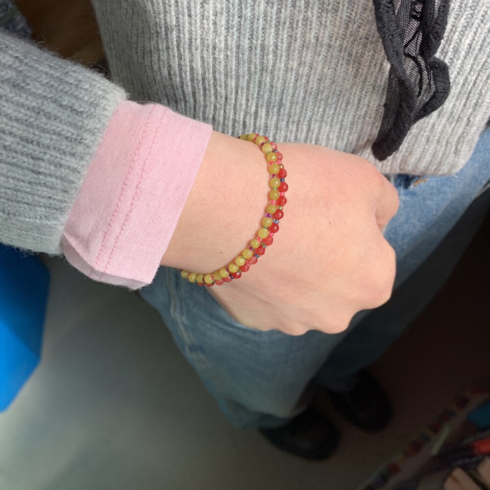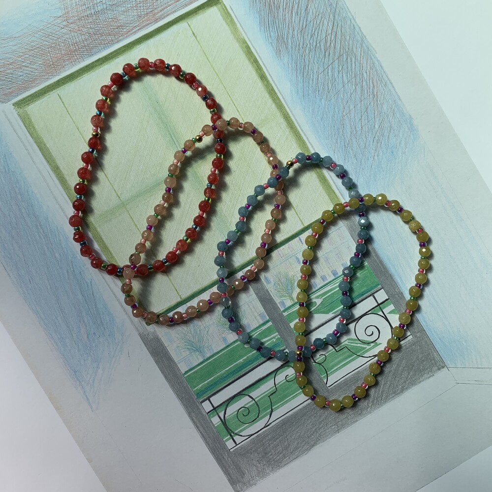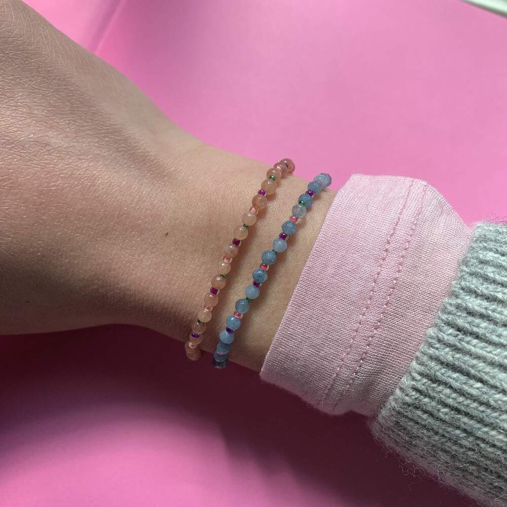 봄, 여름과 잘 어울리는 팝한 색감과 뮤트한 색감으로 톤에 구애 받지 않고 잘 어우러지는 팔찌입니다.