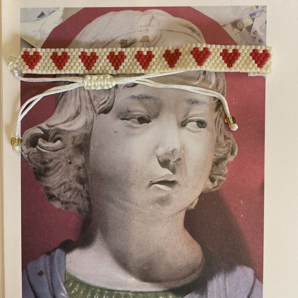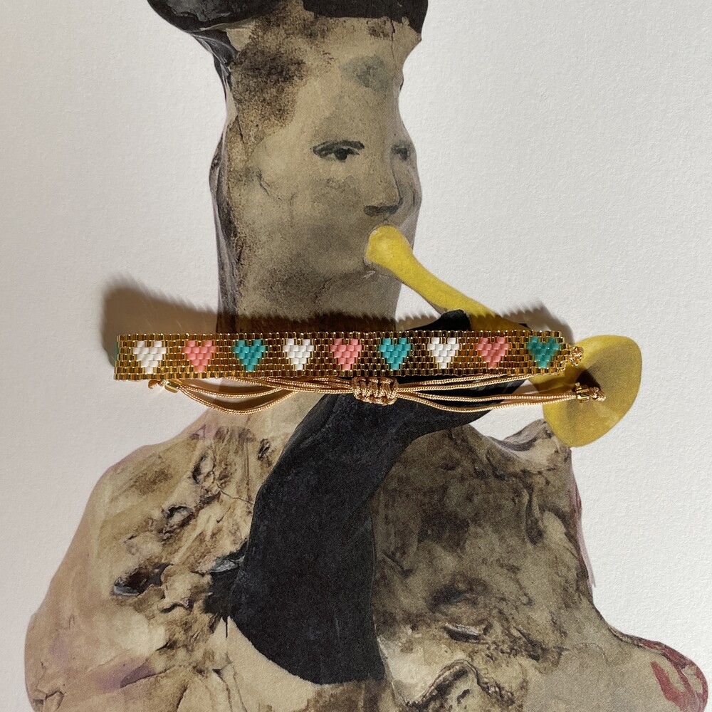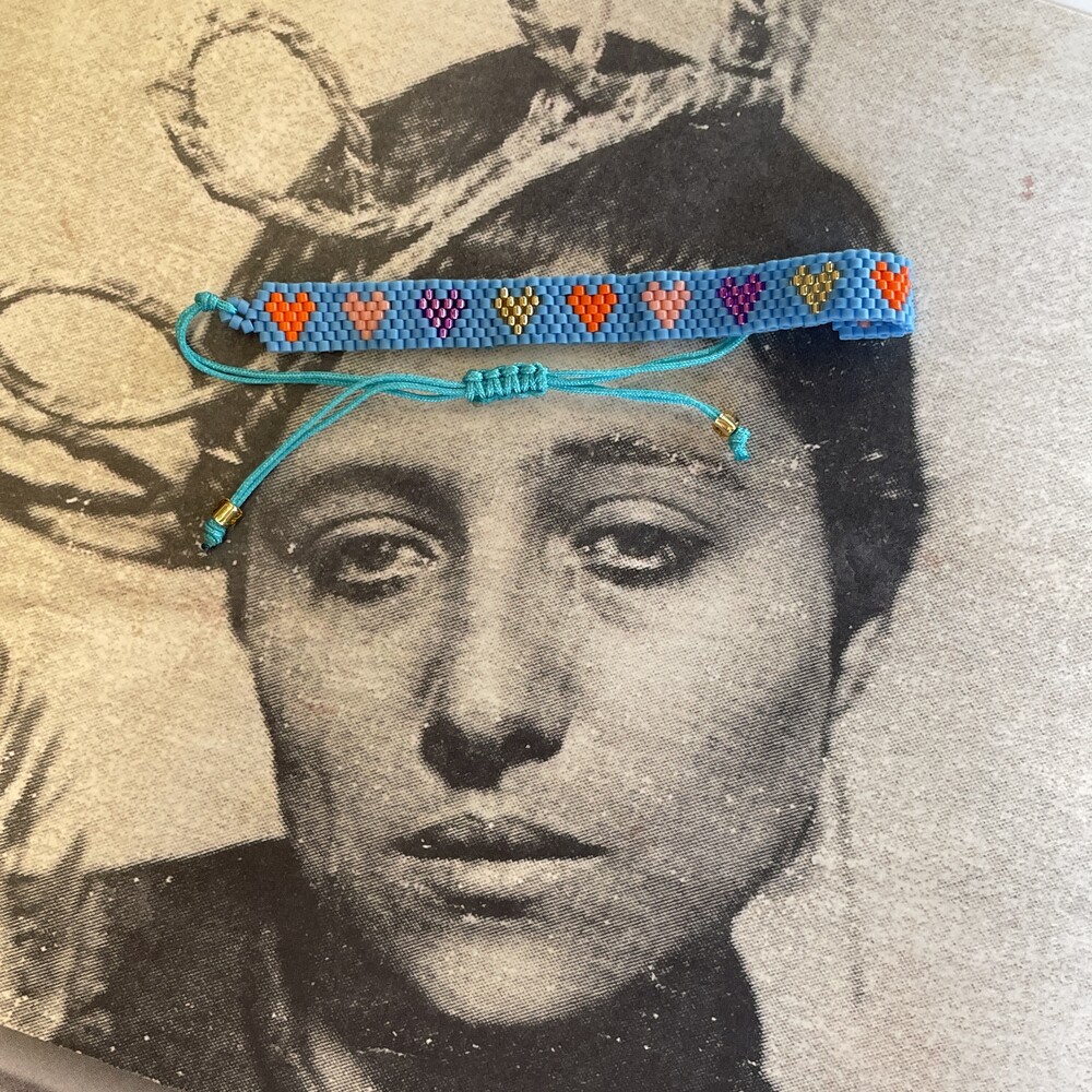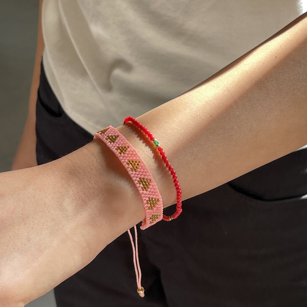 사랑스러운 하트 무늬와 매력적인 색감이 어우러진 비즈 팔찌로 포인트 주기 좋은 아이템입니다.