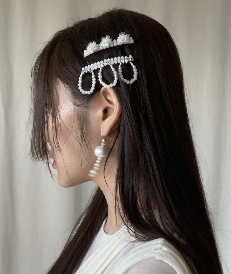 - 아크릴 크리스탈 과 큐빅, 스와로브스키 진주로볼드한 드롭 모양을 만들어준 헤어핀