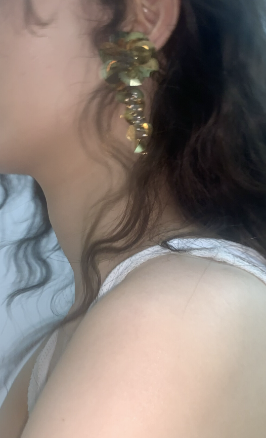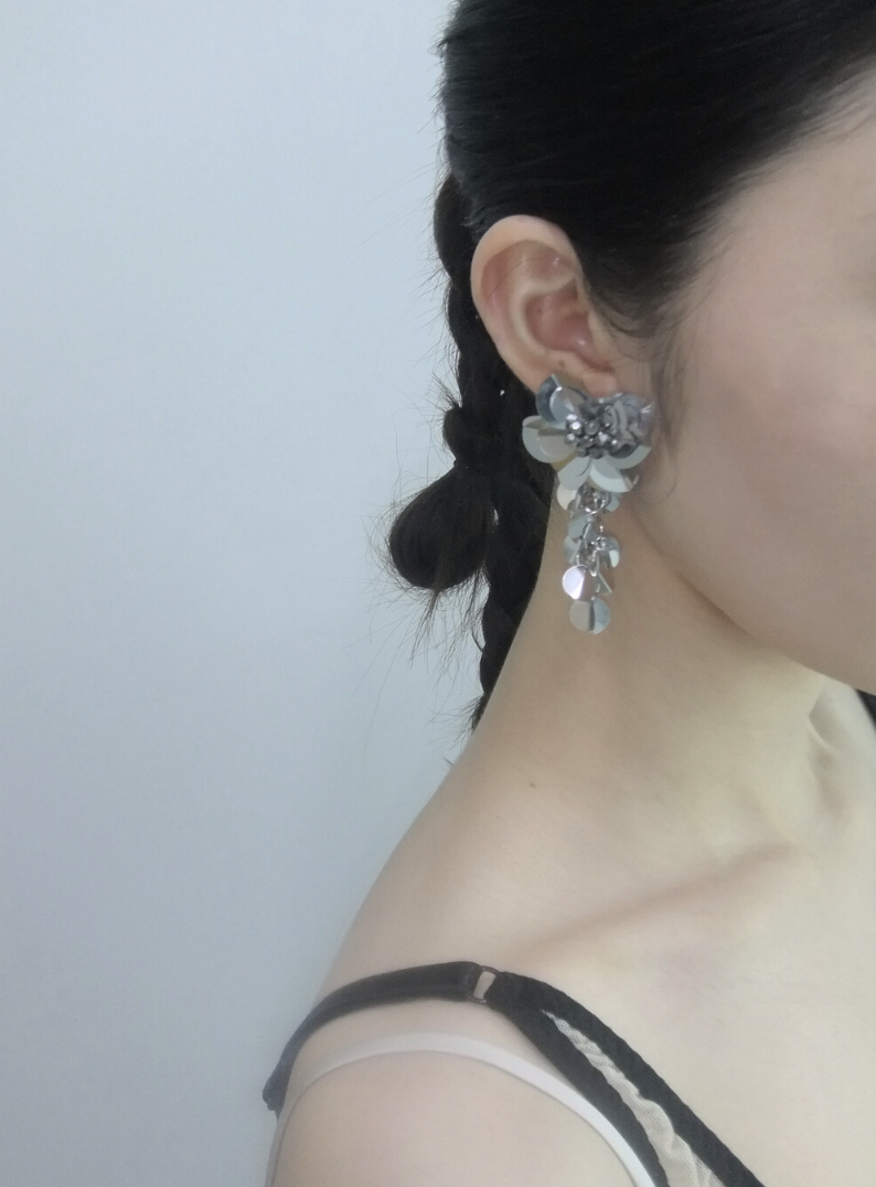 - 스팽글과 크리스탈 비즈를 한땀한땀 엮어낸플라워 아래로 떨어지는 스팽글 샹들리에가 아름다운 디자인- Sterling Silver 침 귀걸이- mhp 로고 각인*샹들리에 부분 스팽글 O링에 그을린 부분은납땜 공정 특성상 생기는 부분으로불량/반품 사유가 되지 않습니다.*뒷면 팰트는 크기와 컬러가 입고시기마다변경될 수 있으며,접착제가 비칠 수 있습니다.이 부분은 불량/반품 사유가 되지 않습니다.*공정 특성상 스팽글에 하얀/검은 점이 있을 수 있으며,이 부분은 불량/교환 사유가 되지 않습니다.- 소재 : Acrylic Crystal, Spangles, Surgical Steel, Sterling Silver- 플라워 크기 : 약 35mm- 총길이 : 약 75mm*길이는 측정하는 방법에 따라 약간의 차이가 있을 수 있습니다.