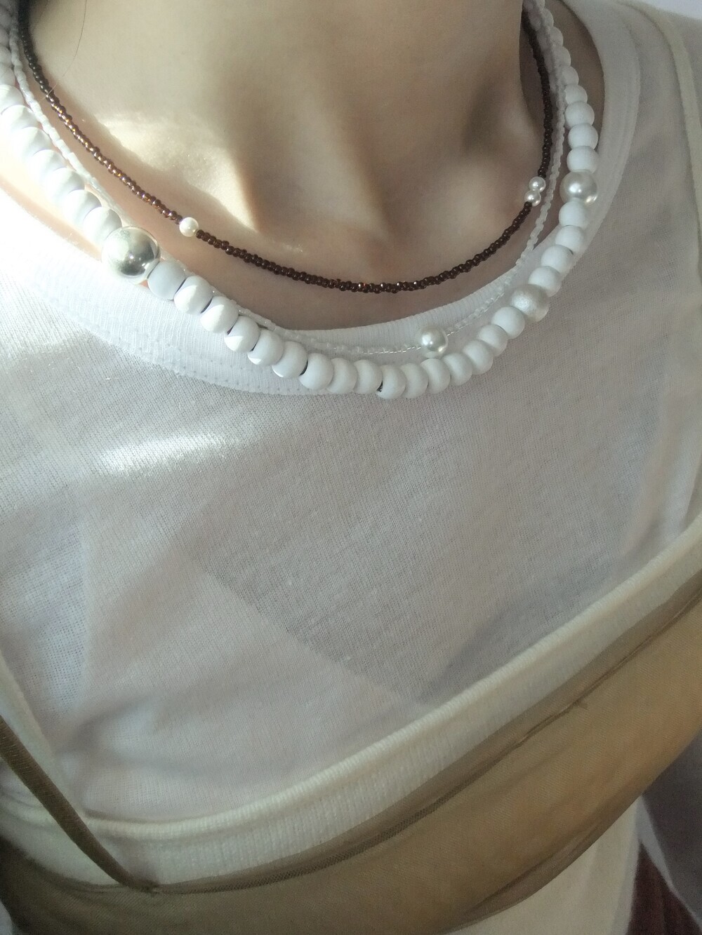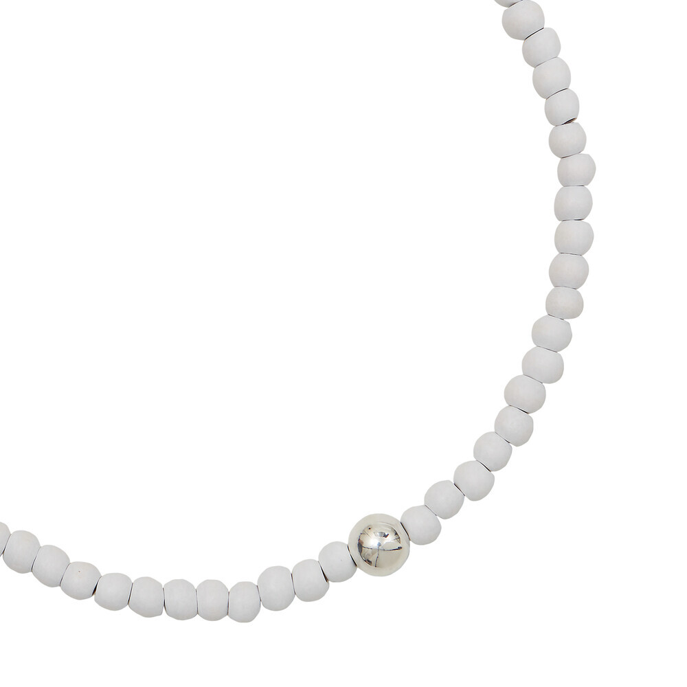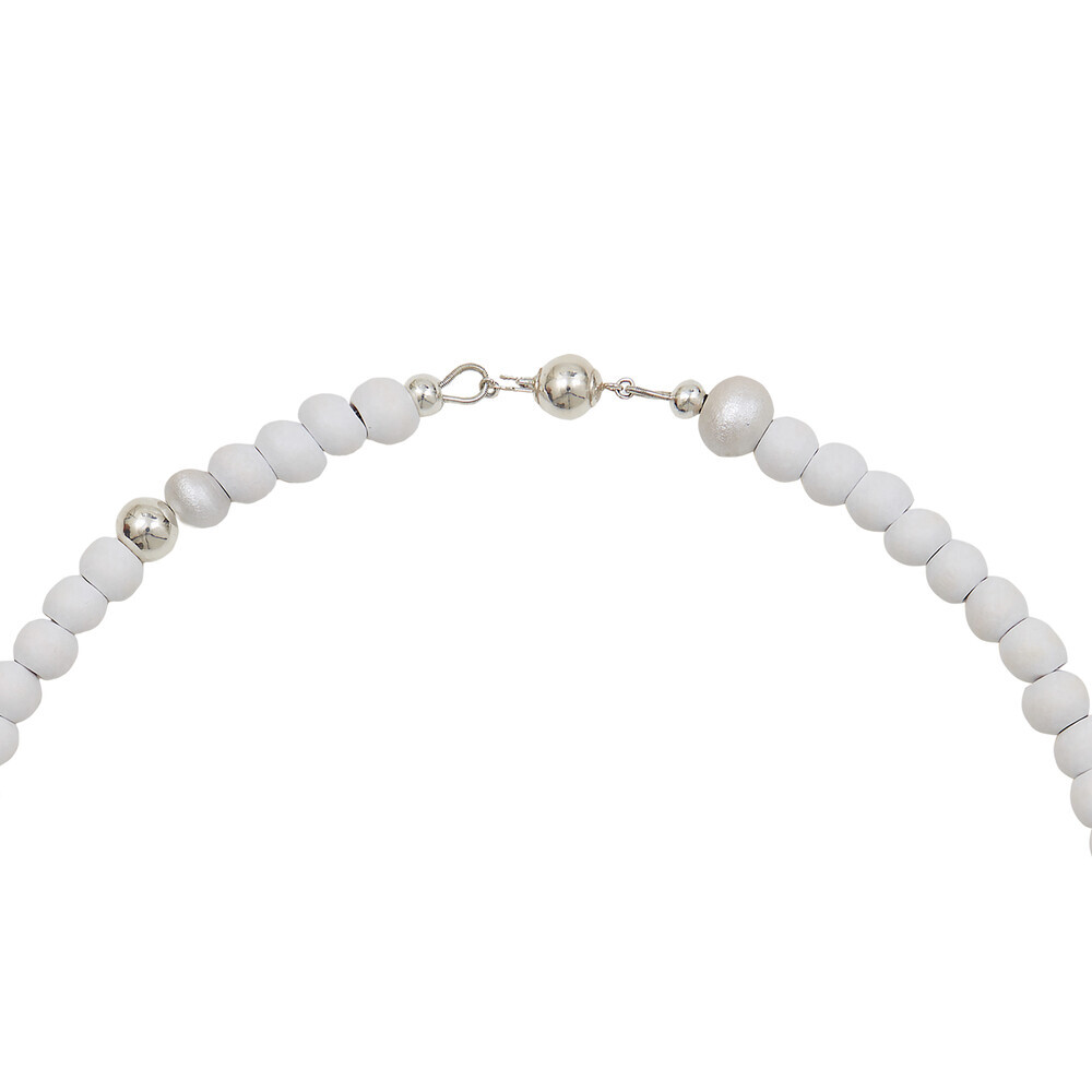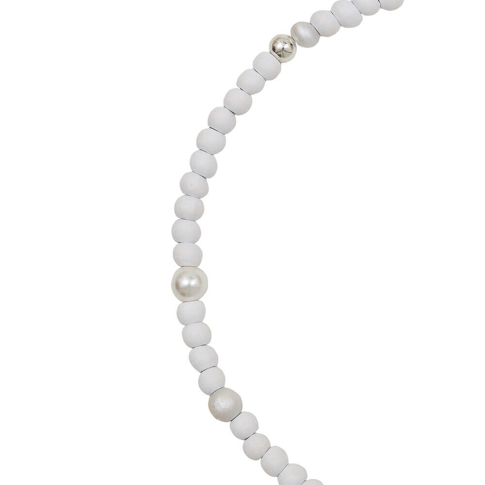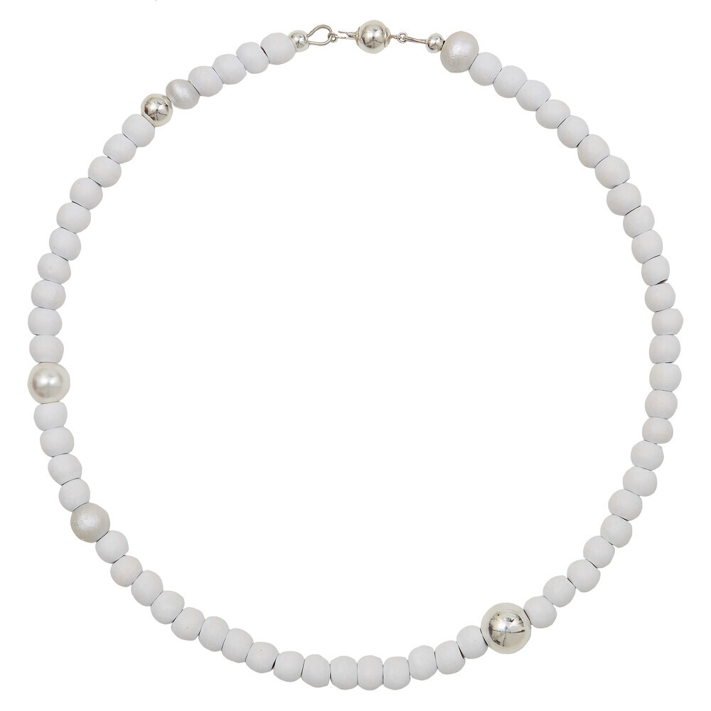 - Bright Silver 우드볼 베이스에 White 우드볼,핵진주, Sterling Silver 팬던트가 다양한 크기로 조합된 디자인