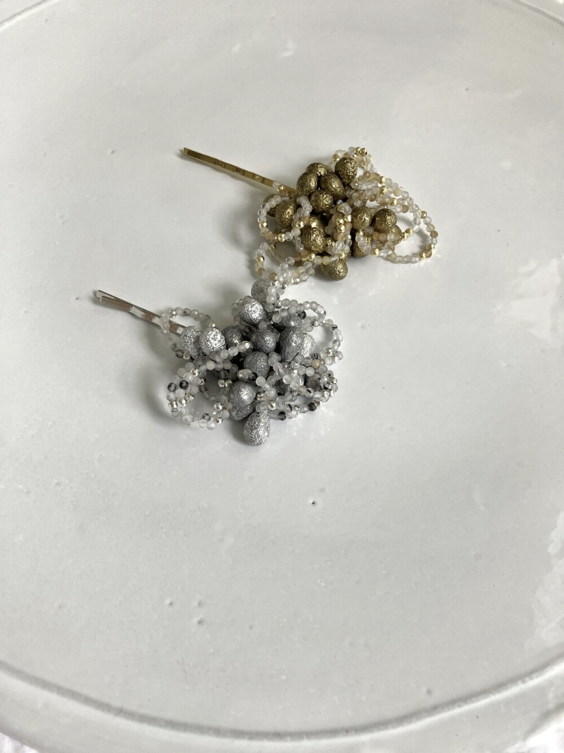 비즈는 전체적으로 실버, 골드 빛을 띄었으나 발색이 밝고 어두운 정도가 믹스되어 있습니다. 이 부분은 불량 사유가 되지 않습니다. 이 점을 충분히 이해하시고 구매해 주시길 바랍니다.
