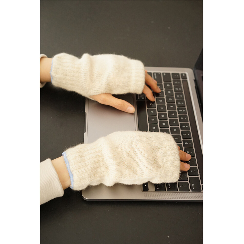 엄지 손가락을 넣을 수 있는 홀과 함께 나머지 네 손가락이 노출되어 있어, 착용한 채로 스마트폰이나 PC 작업이 가능합니다.