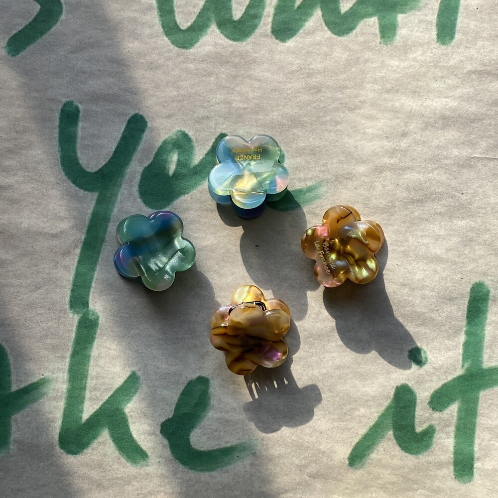플라워 모양의 미니핀을 소개해드립니다. 집게 형태로 되어 있어, 아기자기한 매력이 느껴지는 핀입니다.