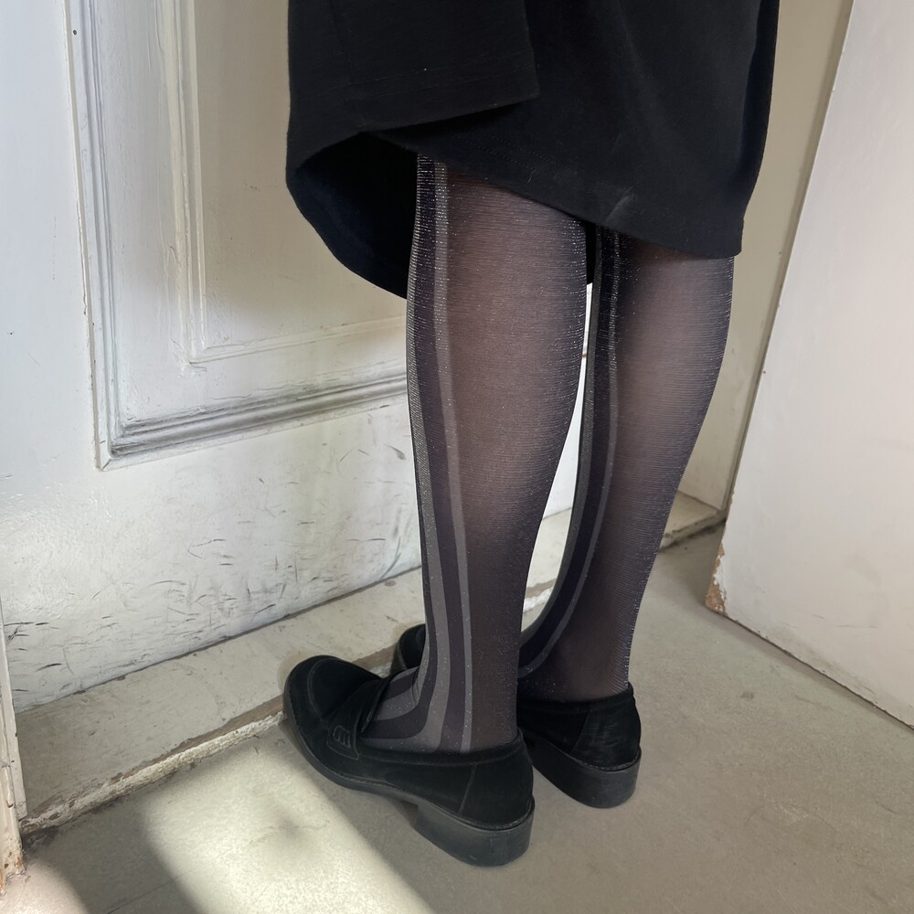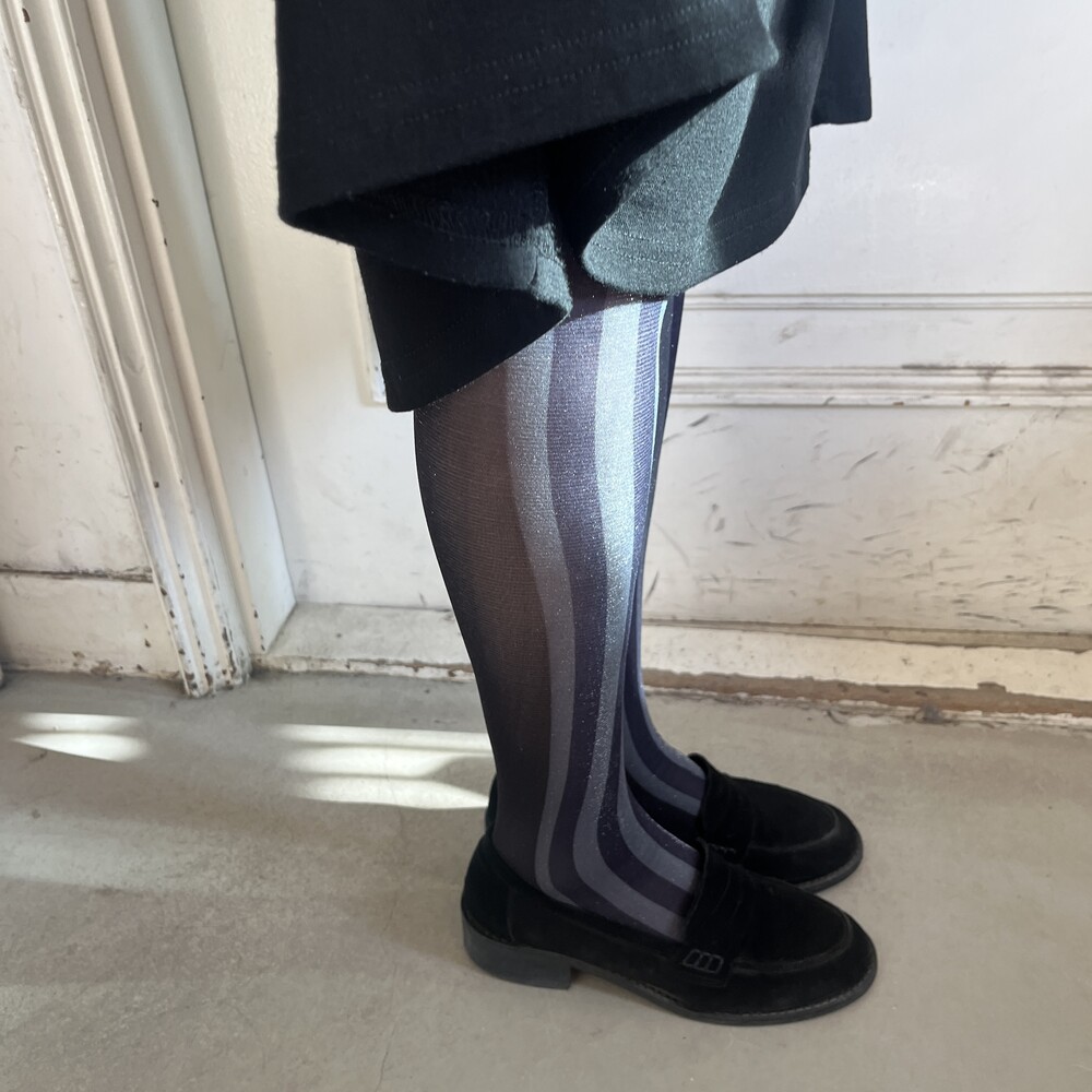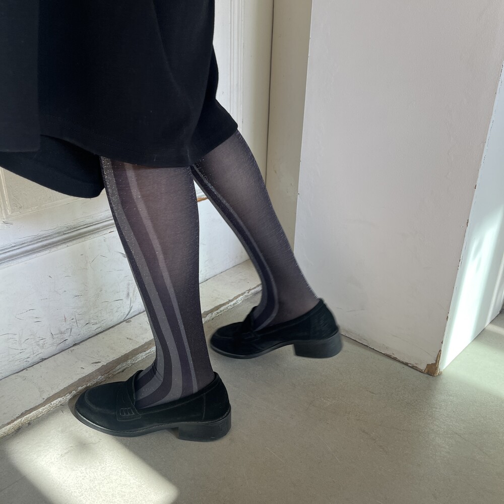 스트라이프와 무지면이 앞뒤 반반 프린트된 펄 스타킹입니다.