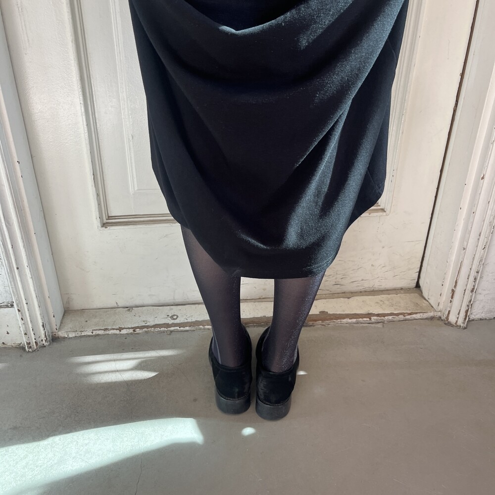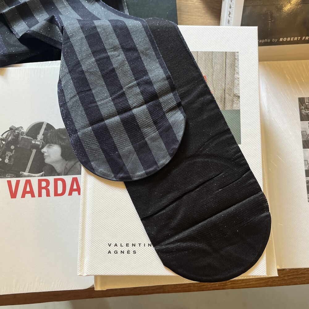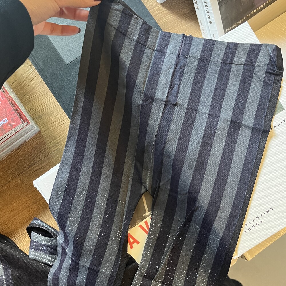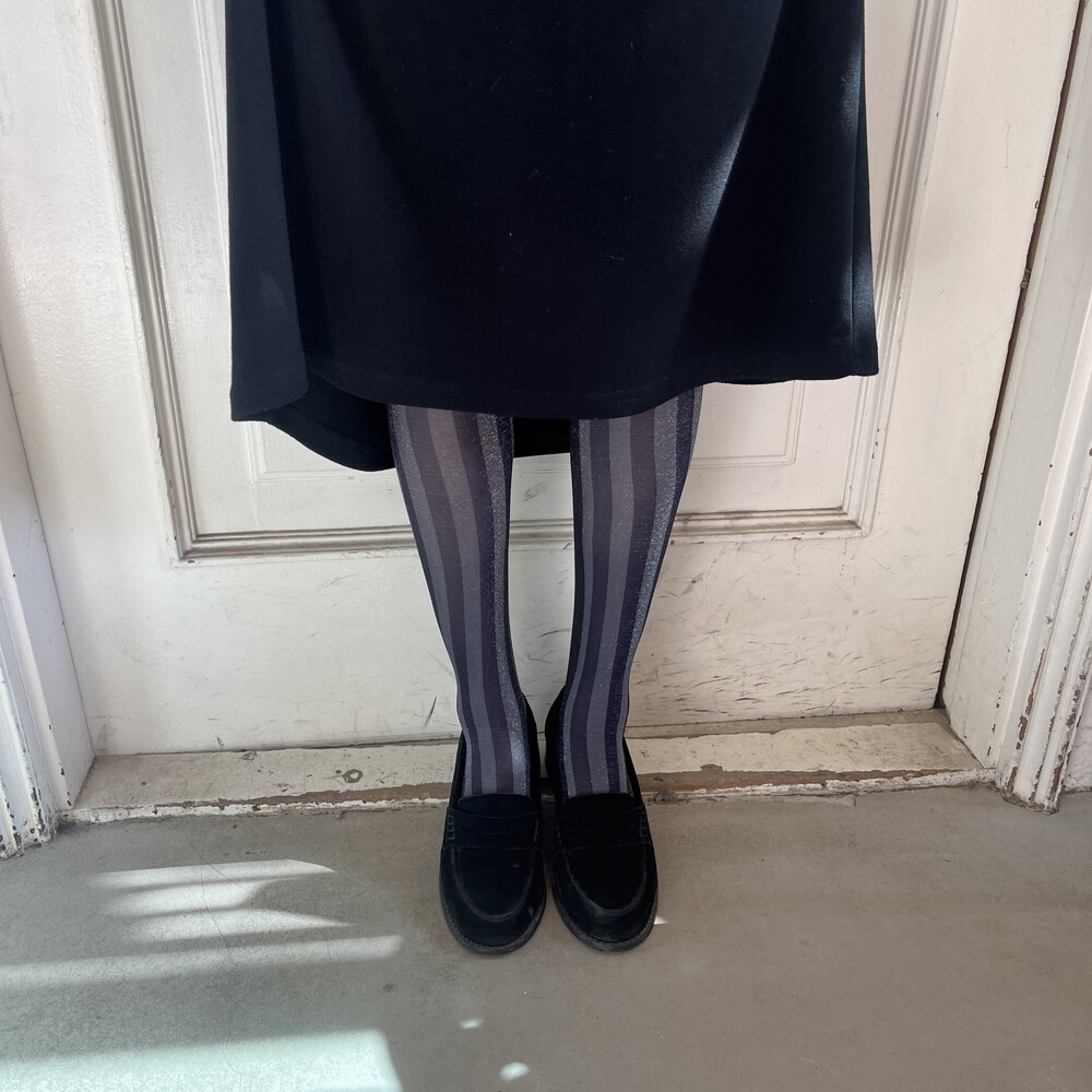 스트라이프와 무지면이 앞뒤 반반 프린트된 펄 스타킹입니다.