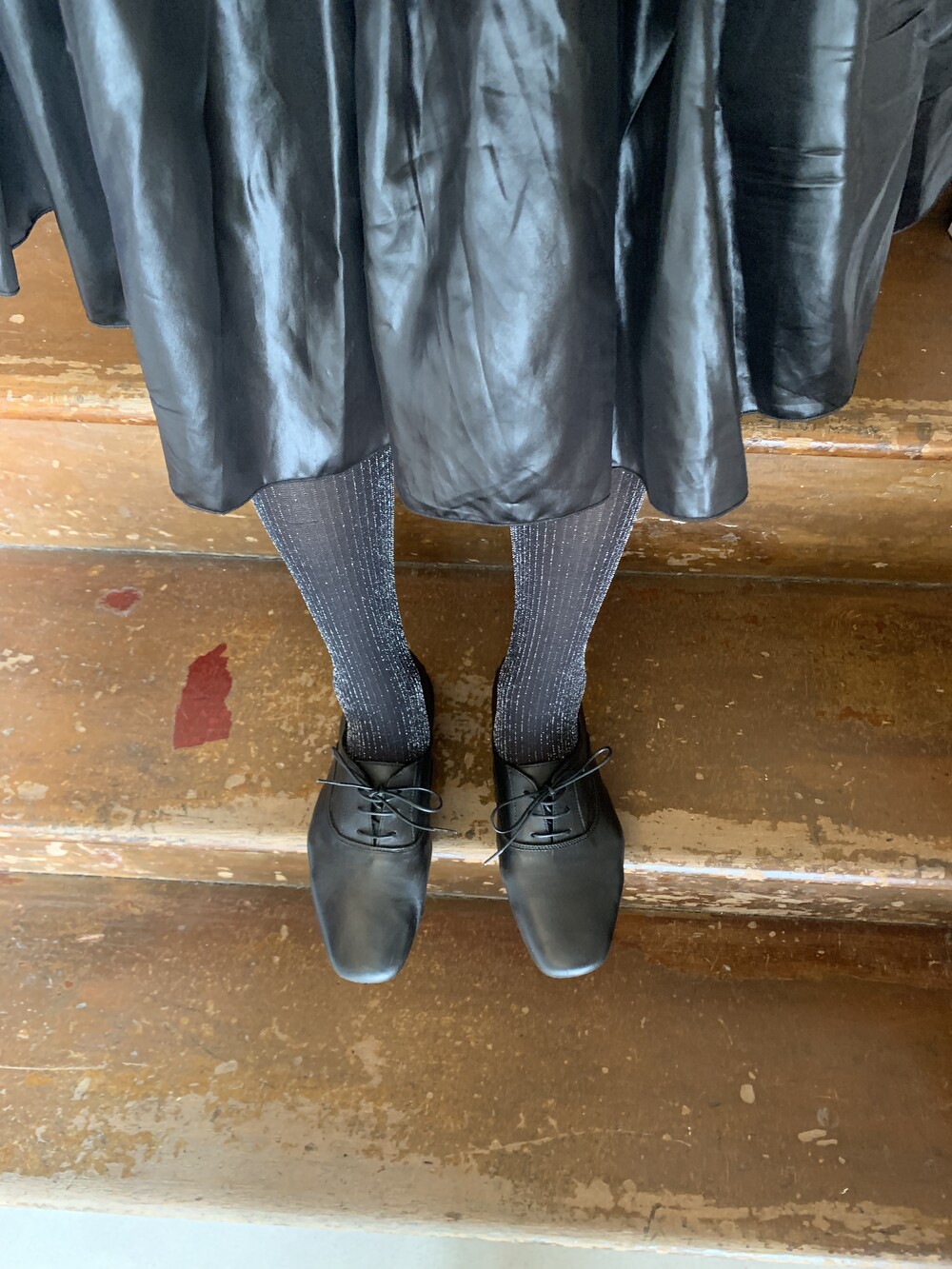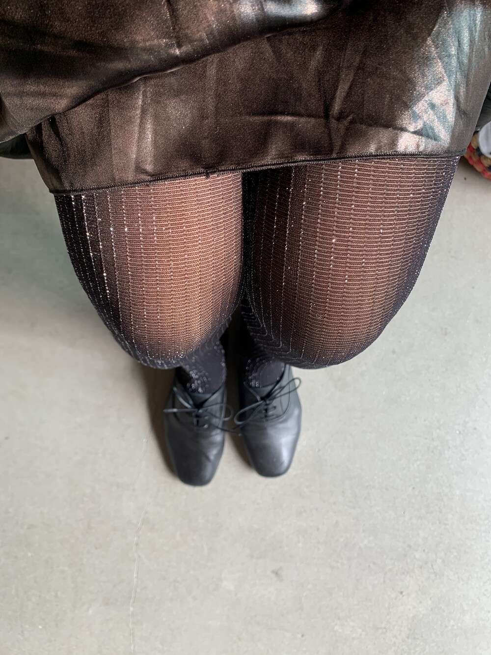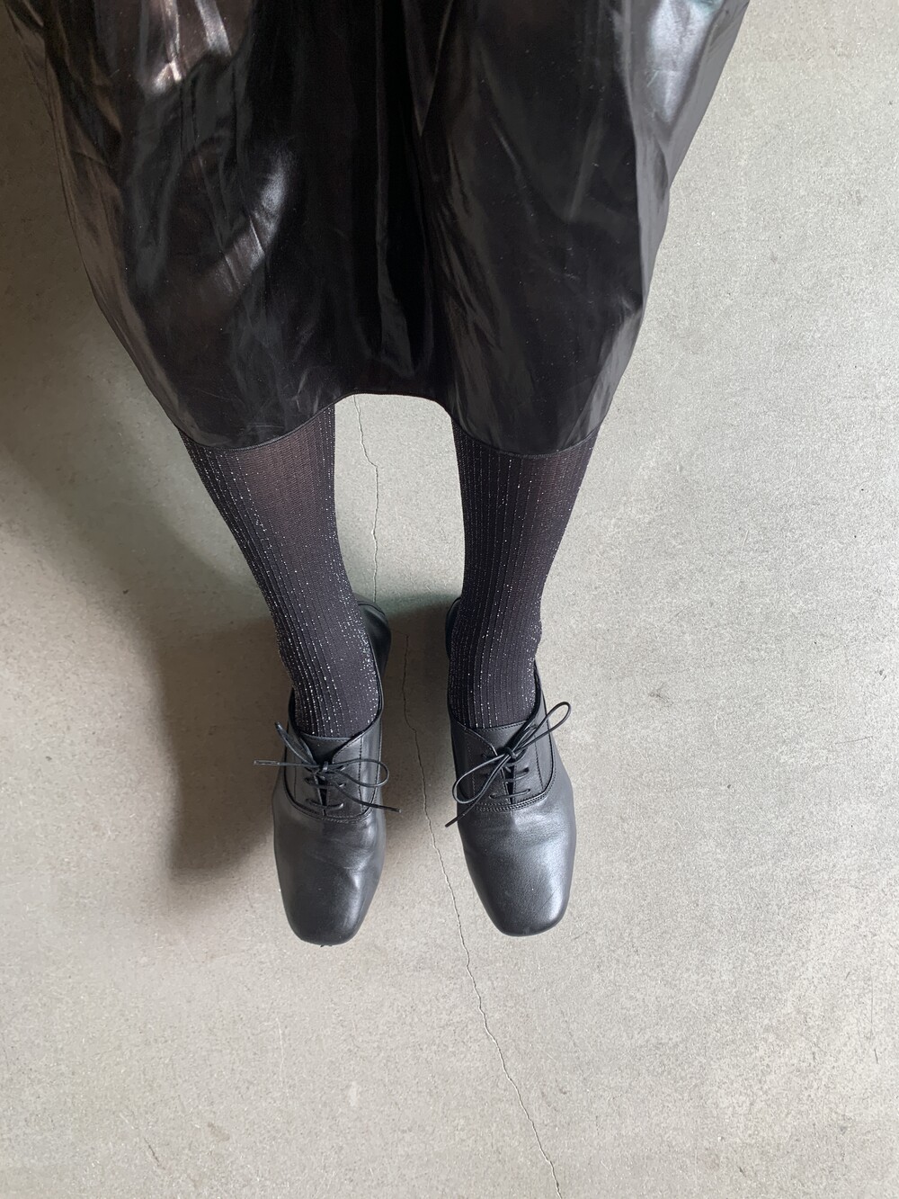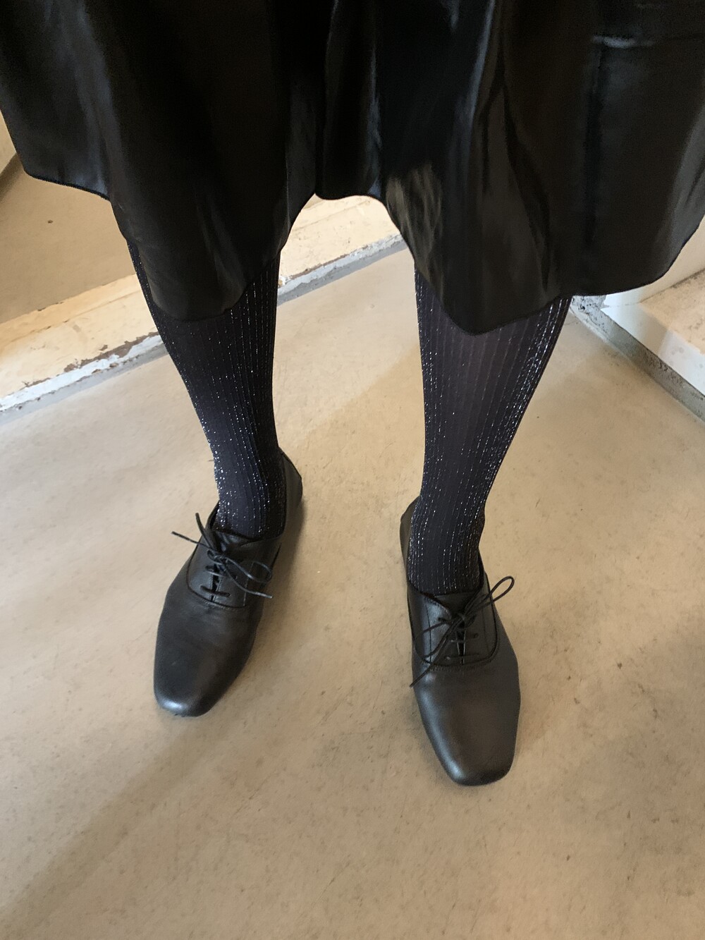 포인트되는 패턴이 더 돋보이는 스타킹으로 미디or롱 스커트에 매치했을 때 잘 어울렸는데요,