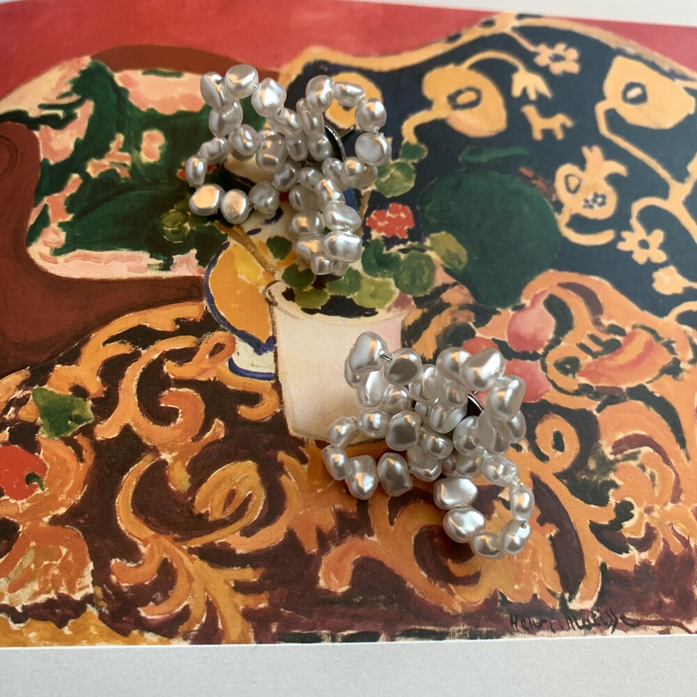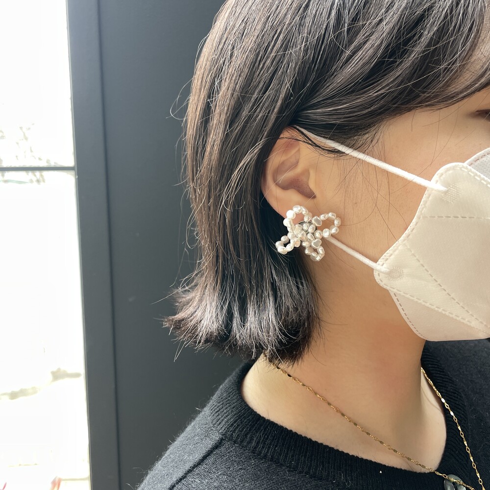 포인트 주기 좋은 아이템으로 블랙톤 옷에 더 잘 어울리는 Petal Pearl Earring