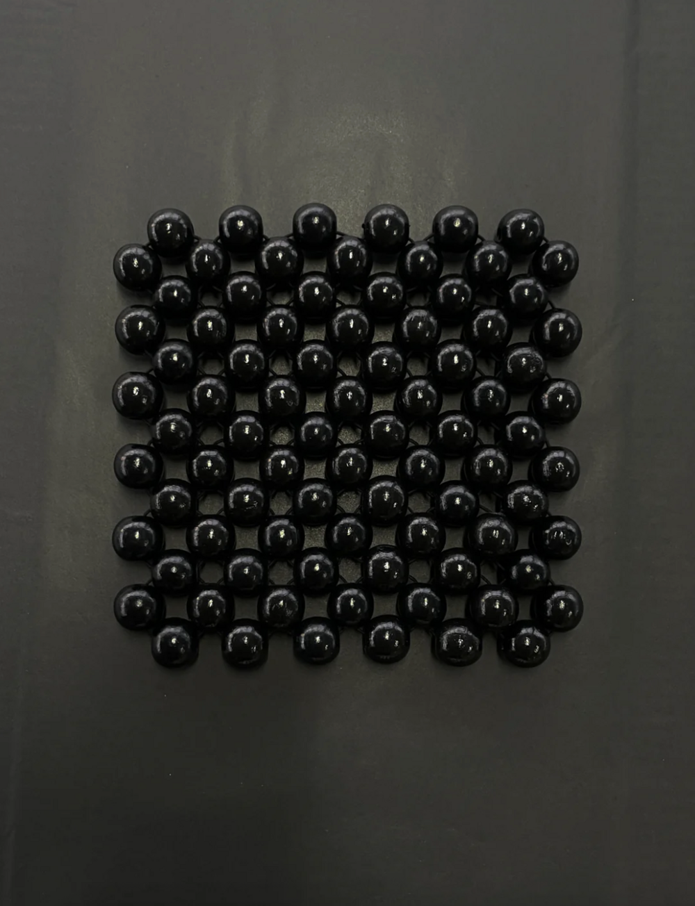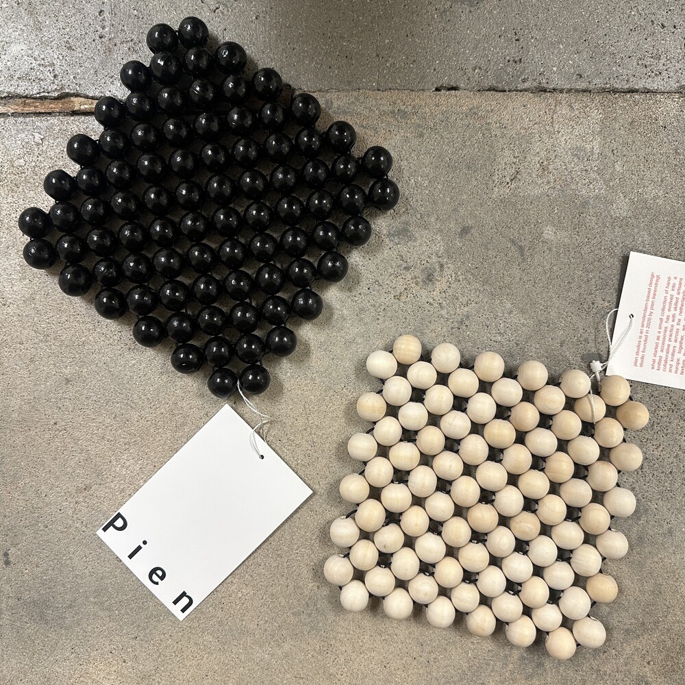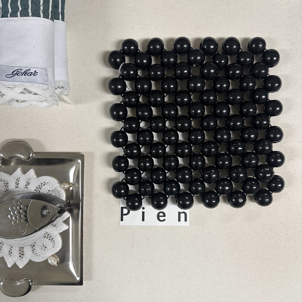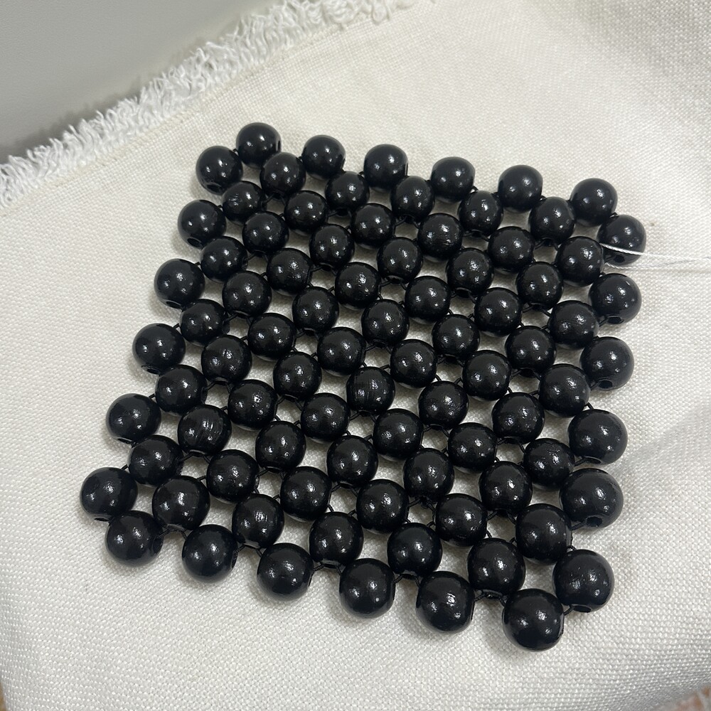 유광 마감 처리를 한 검정색 내추럴 우드를 하나하나 엮어 만든 Wooden beads coaster 입니다.