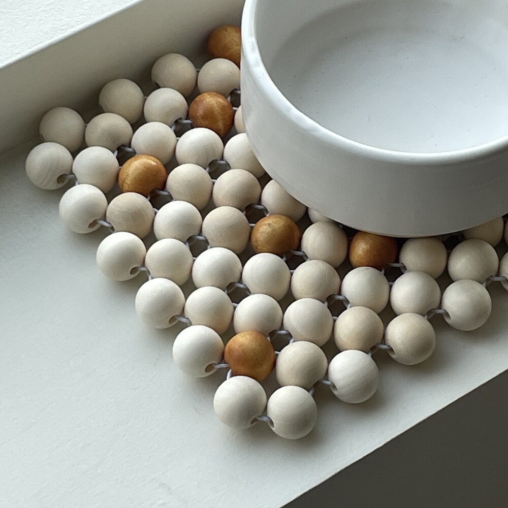 내추럴 우드를 하나하나 엮어 만든 Wooden beads coster는 차갑거나 뜨거운 음료 모두에 사용 가능하며 코스터 용도가 아닌 오브제로 활용하기에도 너무나 매력적입니다.