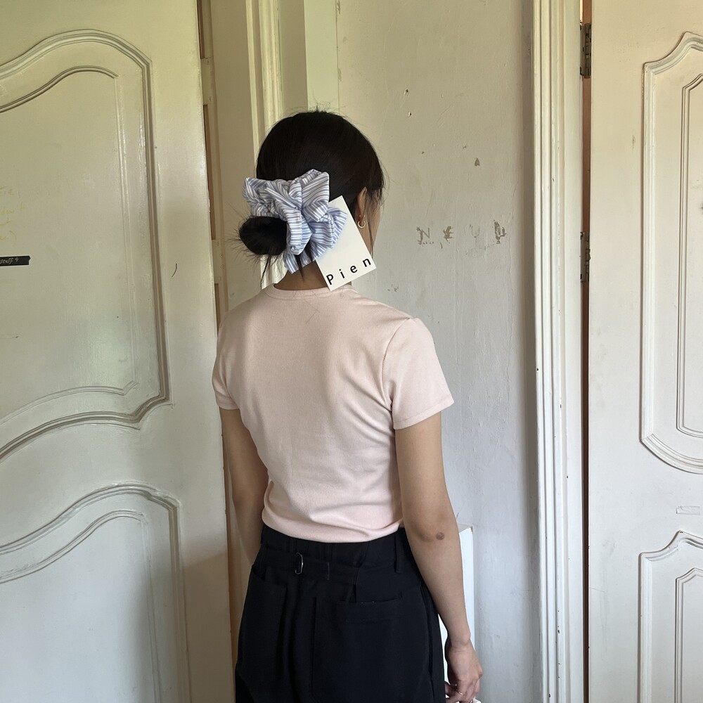 the pj scrunchie is an every changing item. the striped pattern depends on available deadstock fabric.