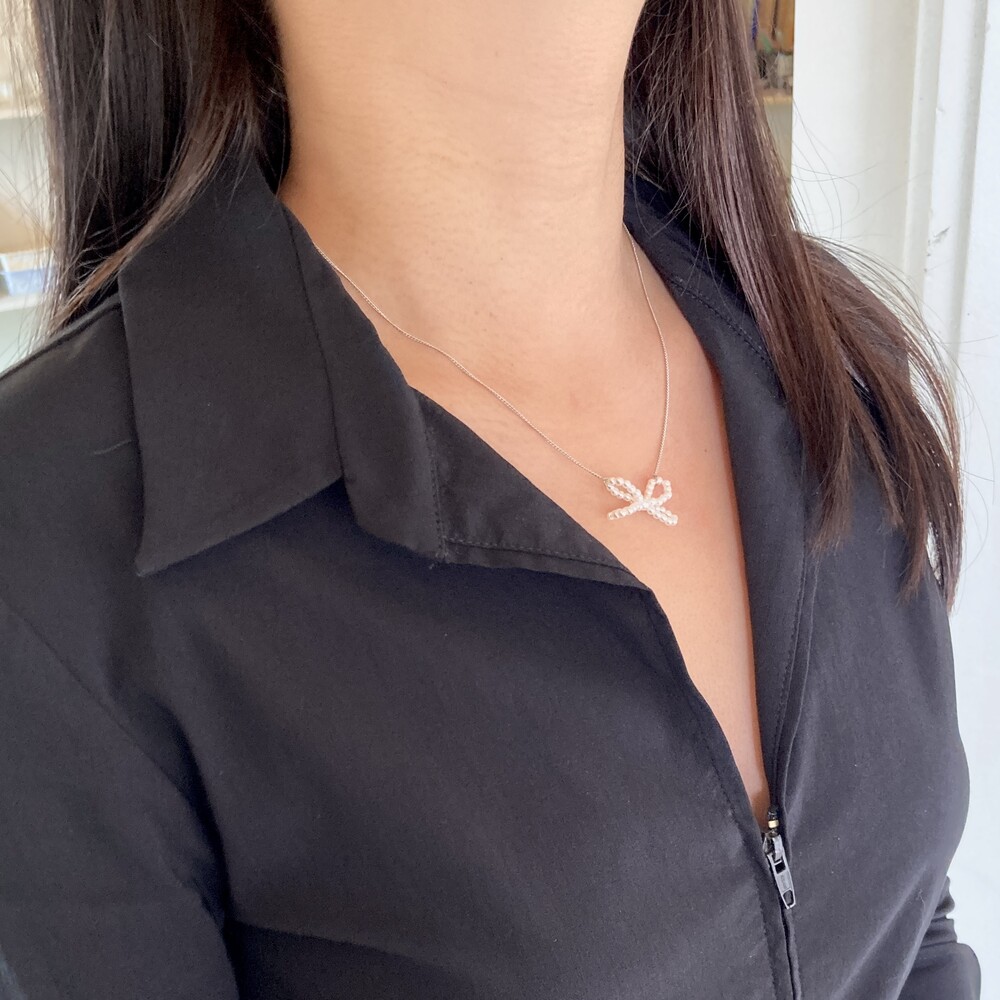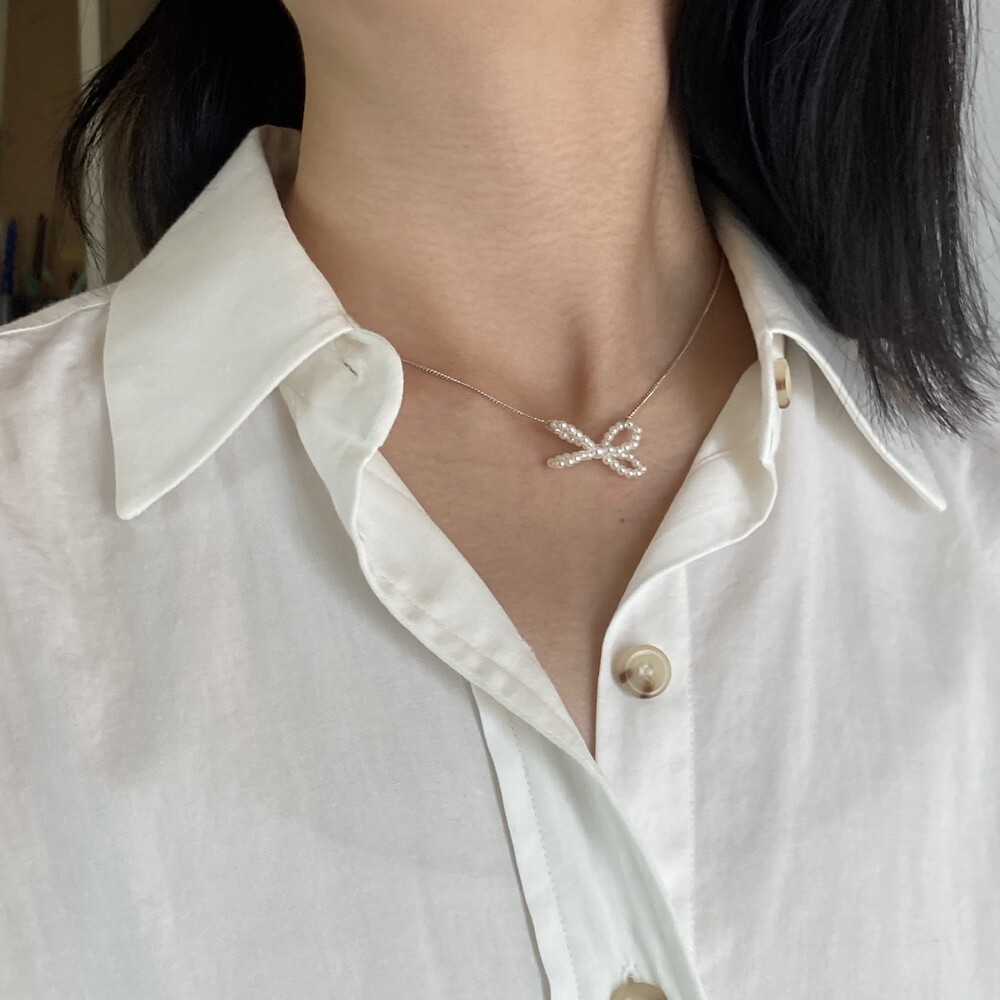 사랑스러운 무드가 담긴 Ribbon Pearl Necklace를 소개해드립니다.