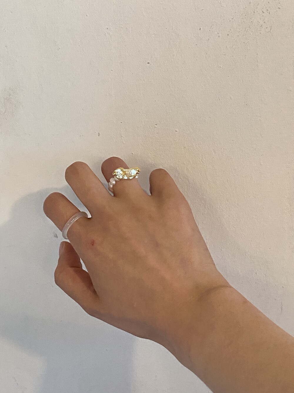 검지 OI Pearl Ring / 중지 Popcorn Ring / 소지 Shell Pearl Ring 입니다.