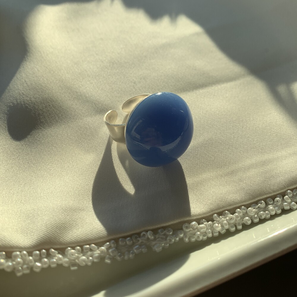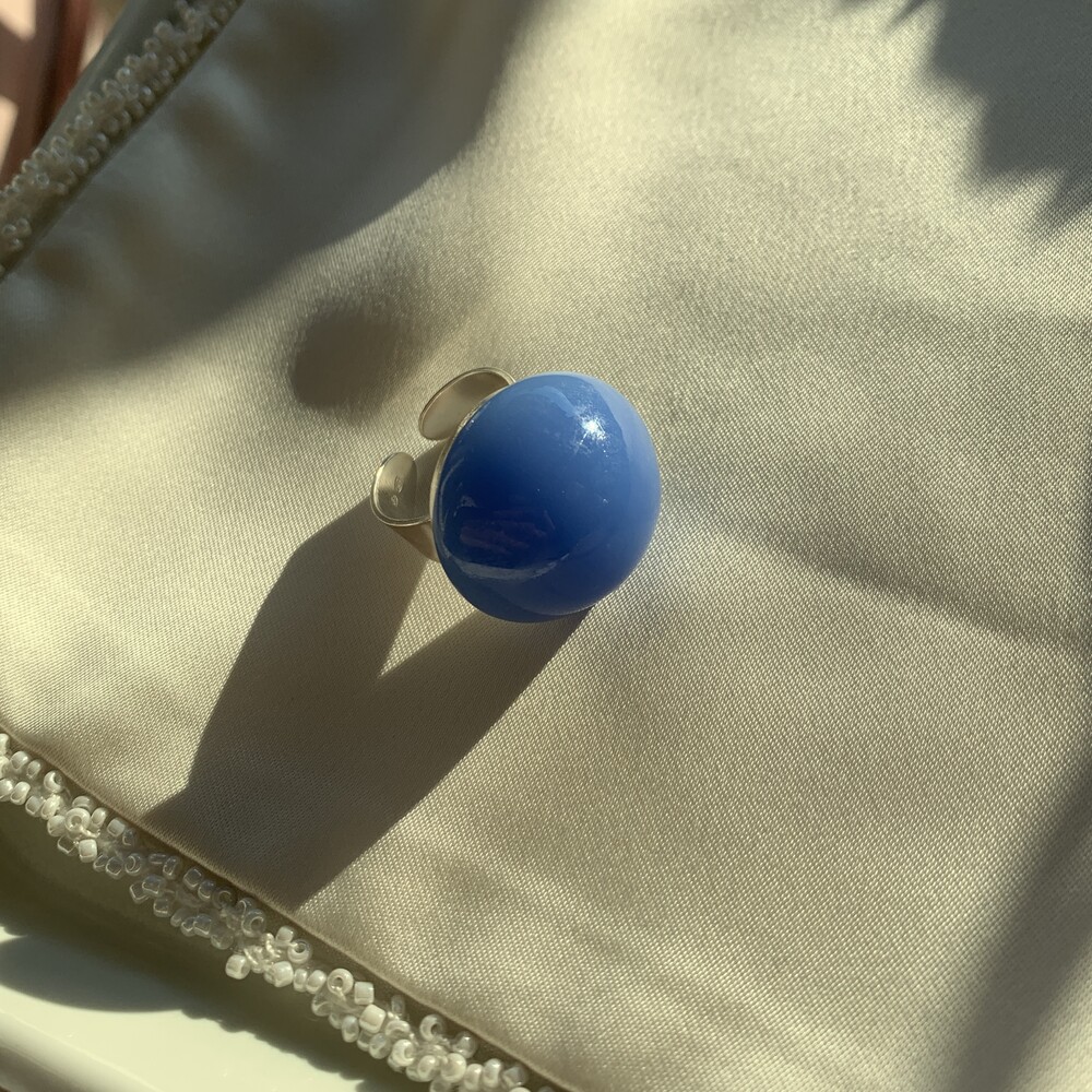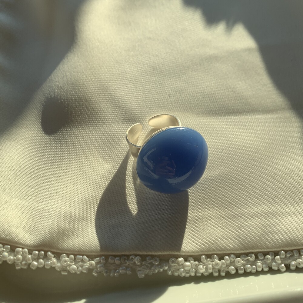 - Details : Vintage glass cabochon , Sterling silver adjustable ring.
