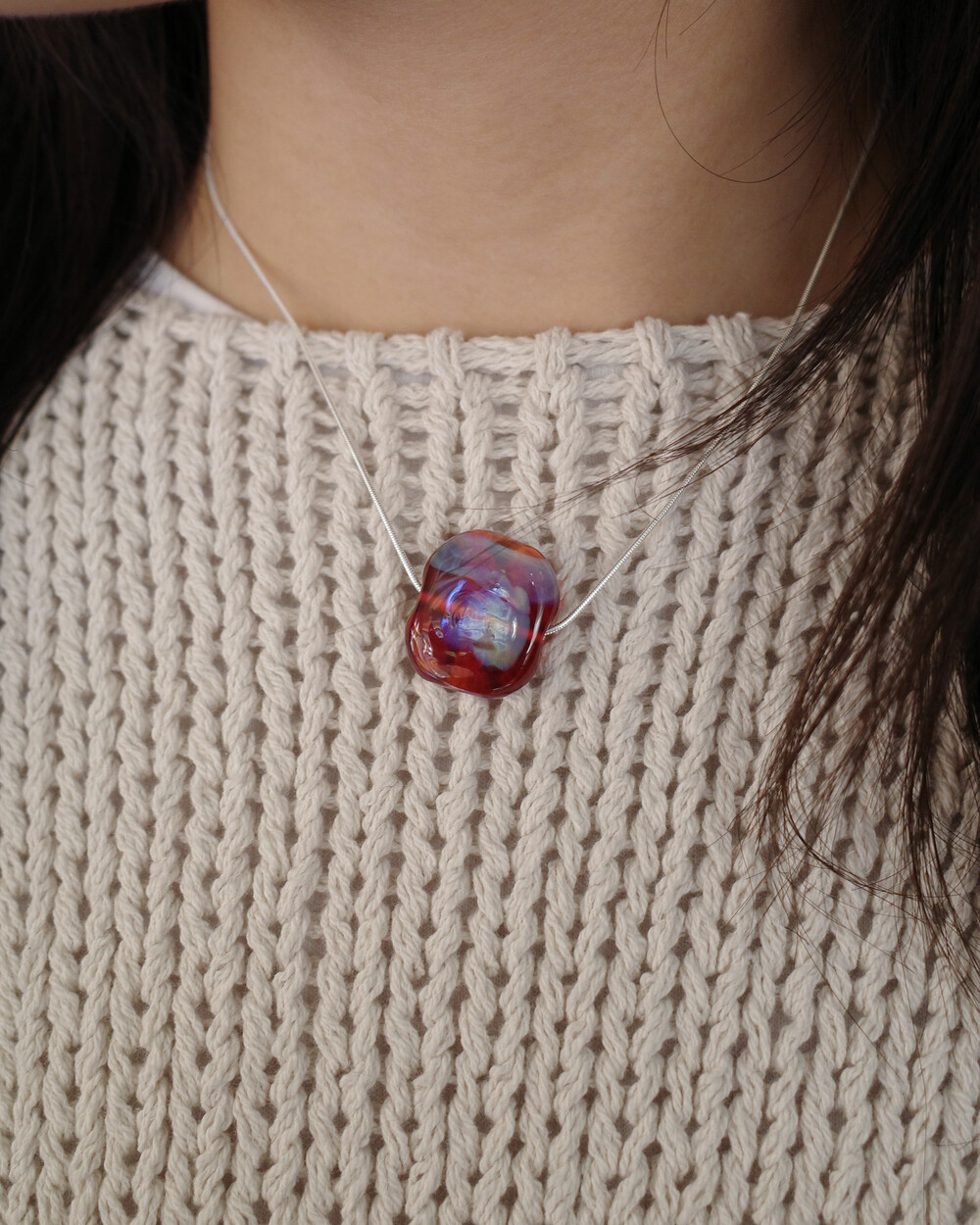 다양한 형태의 유리, 원석을 조합하여 화려하고 독특한 핸드메이드 주얼리를 탄생시키는