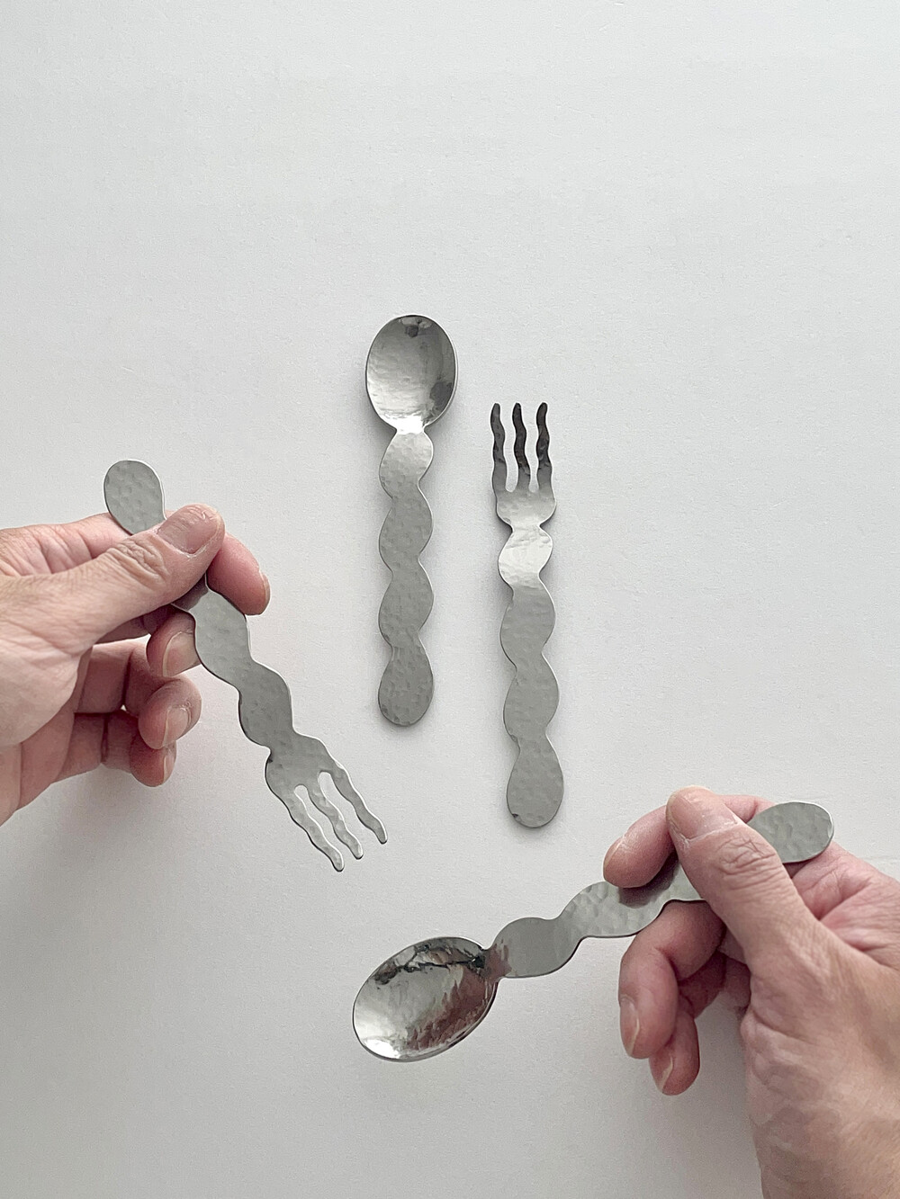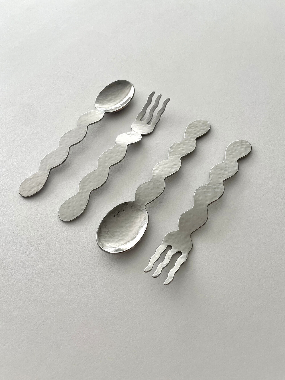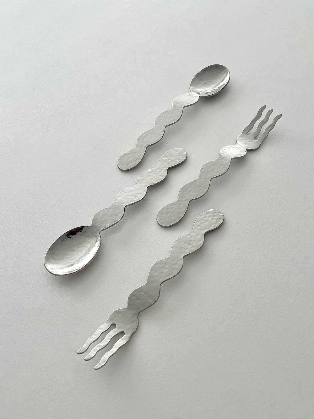 집 앞에 흐르는 시냇물을 보고 영감을 받아 만든 디저트 커트러리 입니다. 물이 흐르는 모습을 웨이브의 곡선으로,
