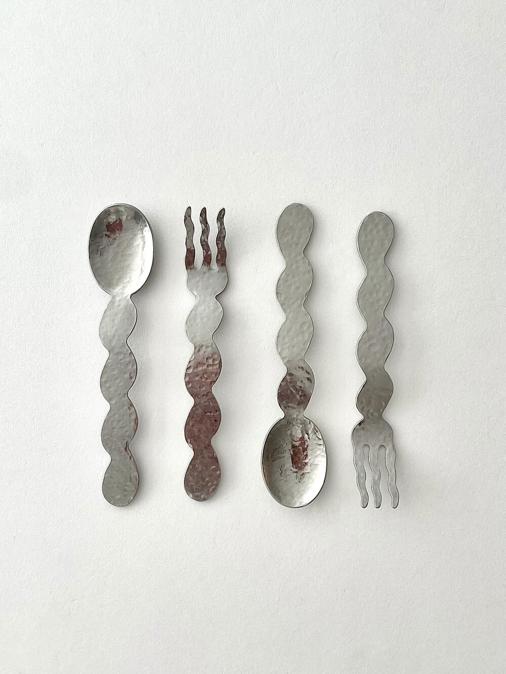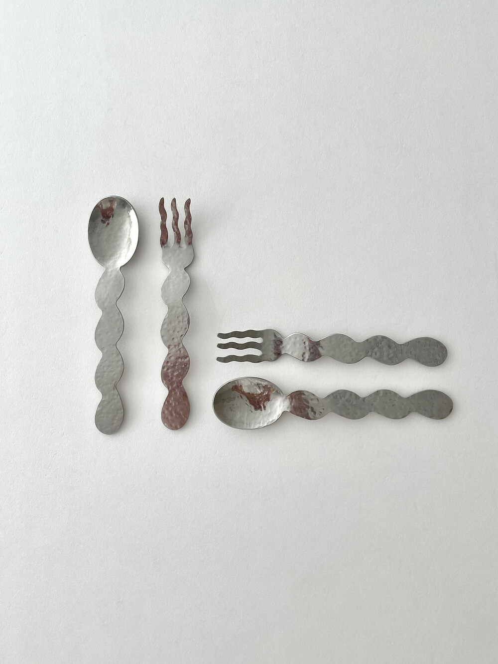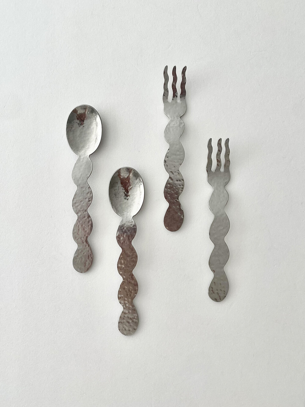집 앞에 흐르는 시냇물을 보고 영감을 받아 만든 디저트 커트러리 입니다. 물이 흐르는 모습을 웨이브의 곡선으로,