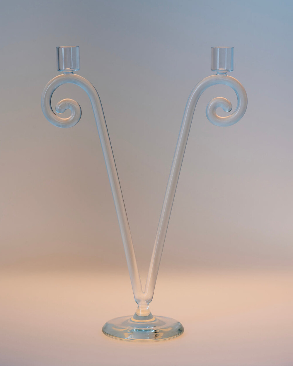 두 가지 클리어 글라스 버전 중 하나로, 이중 스템 형태의 캔들홀더입니다.풍성한 테이블 연출을 위해 디자인되었으며,