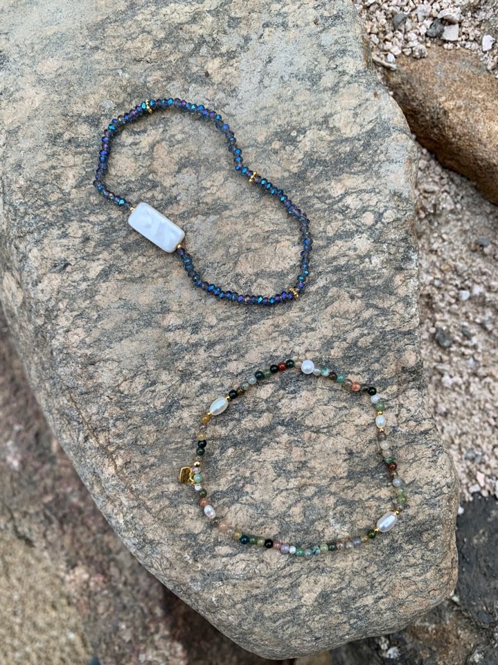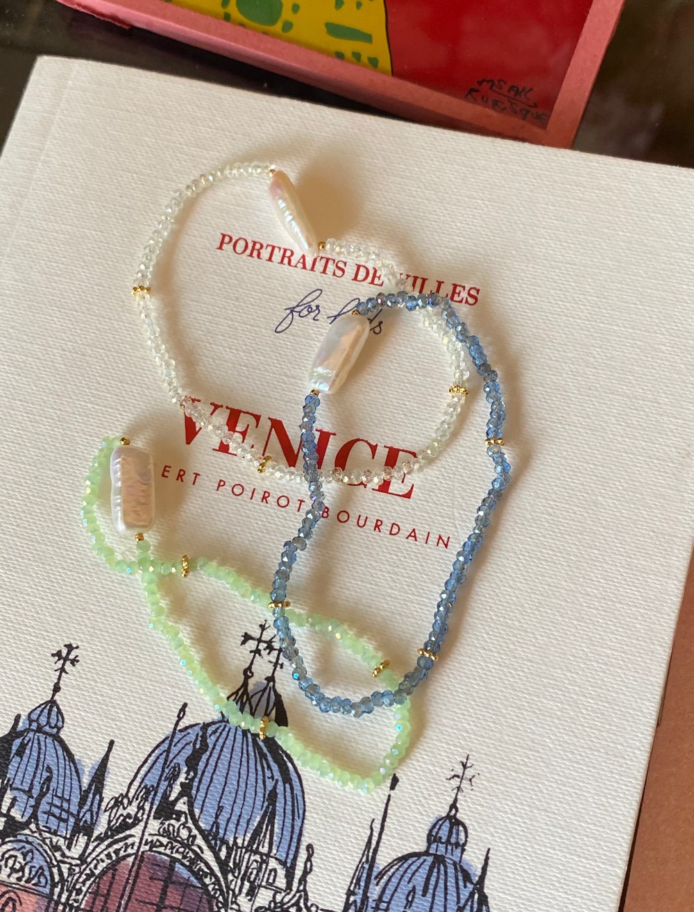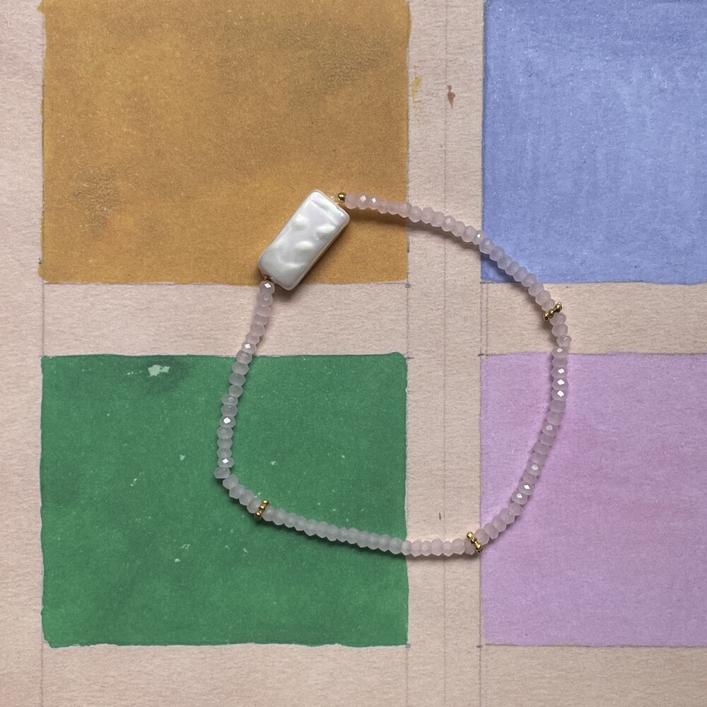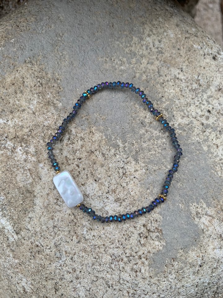 요 제품은 원석은 아니구 비즈로 이루어져있고 진짜 진주로 만든 네모 모양의 포인트가 있어요.