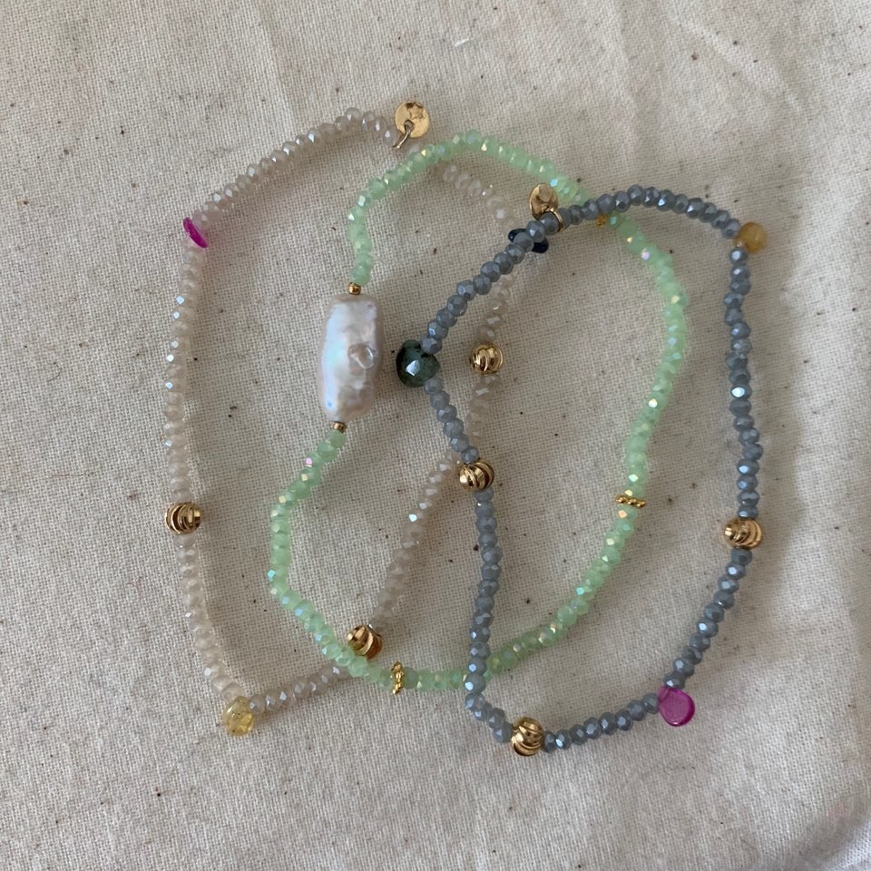 가운데 Melona 컬러구 양옆은 기존에 판매중인 Sparkling Gemstone Bracelet 입니다.