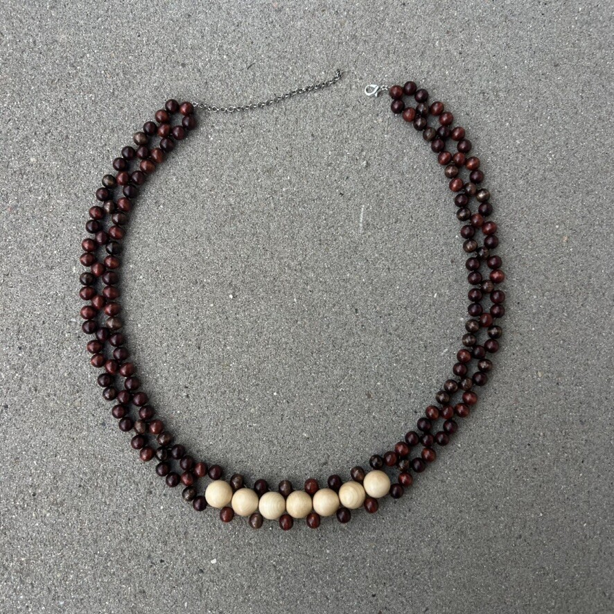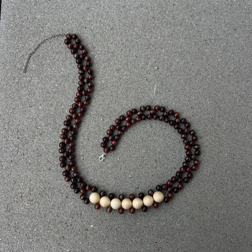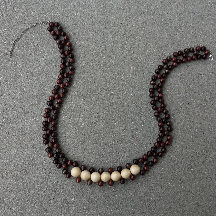 • Detail : 우드 비즈로 정성스럽게 수작업된 벨트입니다.