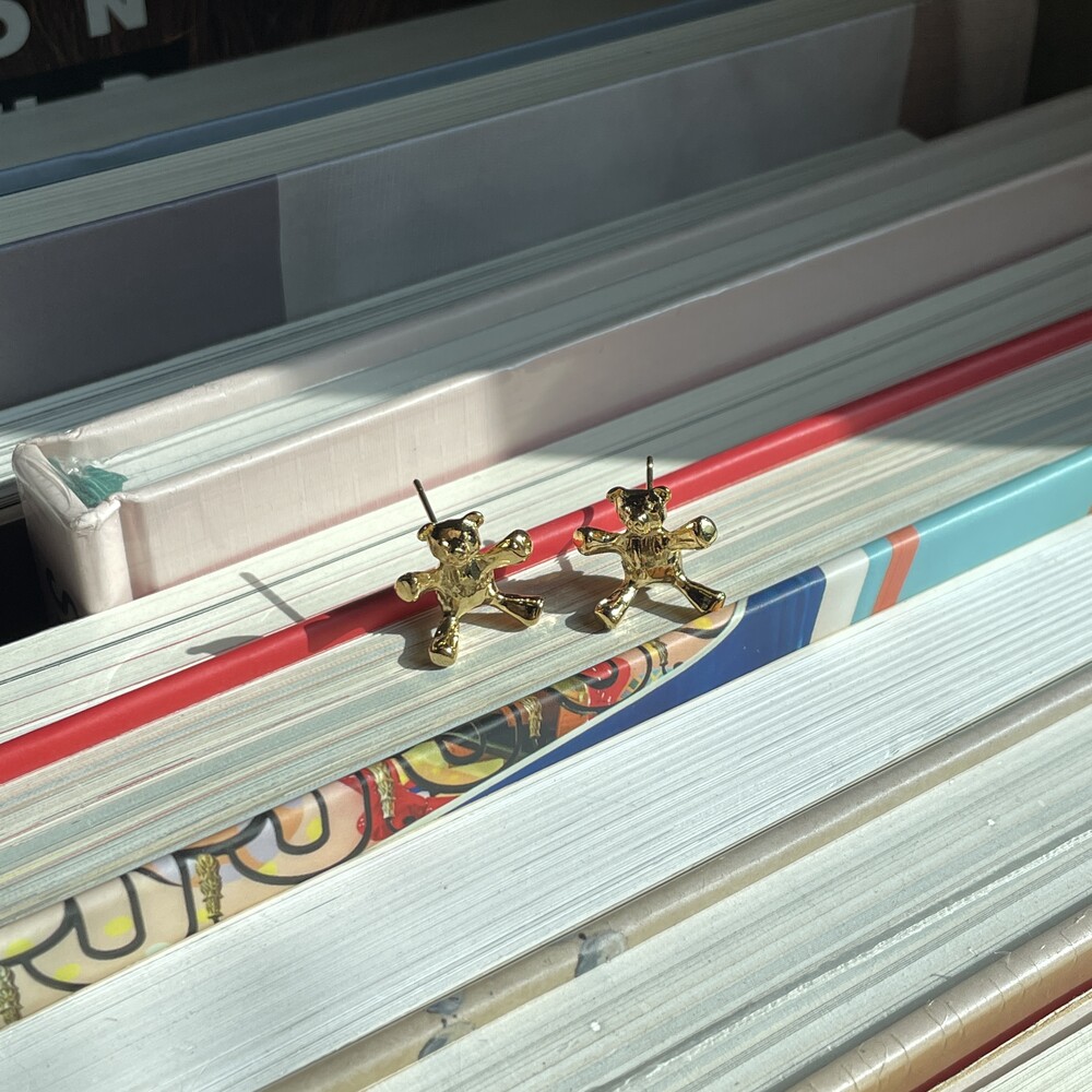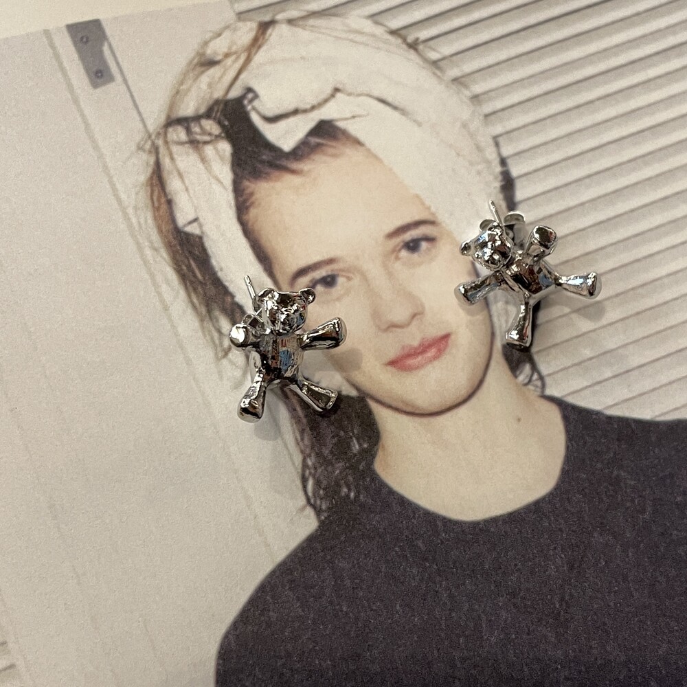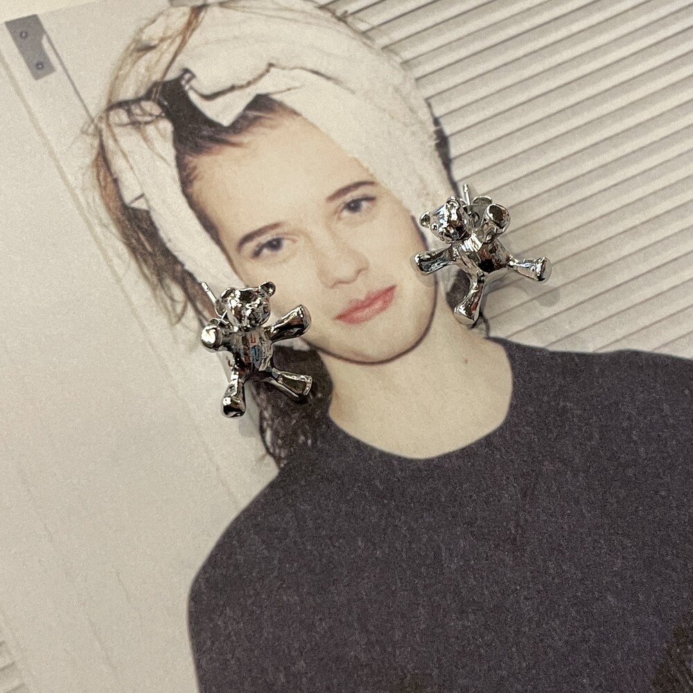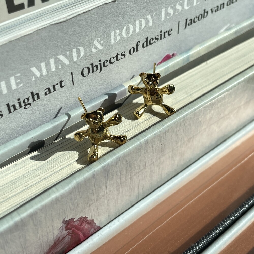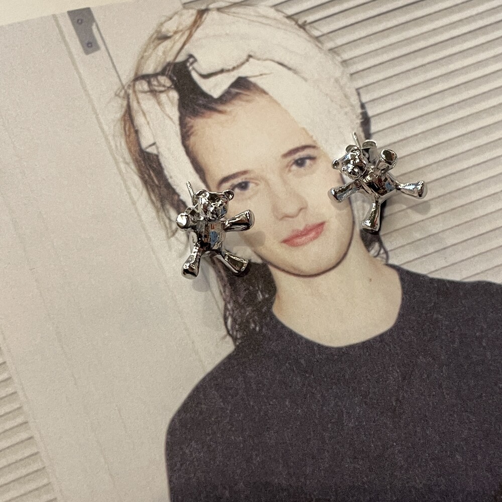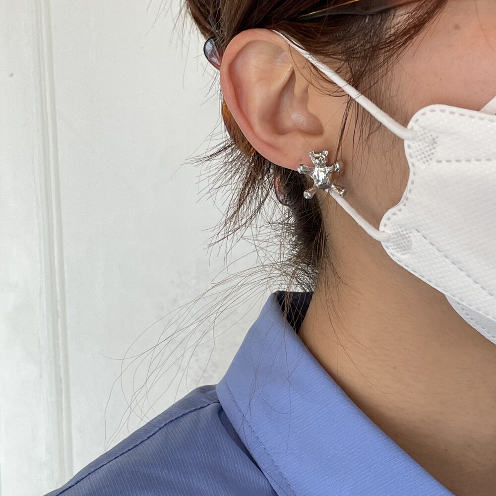 귀여운 곰돌이가 팔 벌리고 있는 모양의 귀걸이로 키치 하면서 매니쉬한 느낌을 가져다주는 제품입니다.