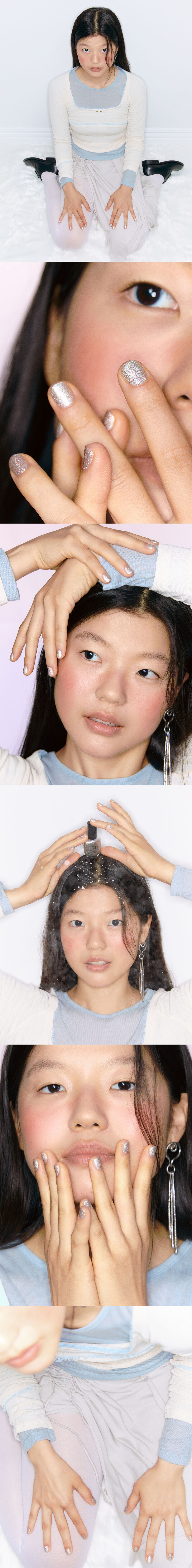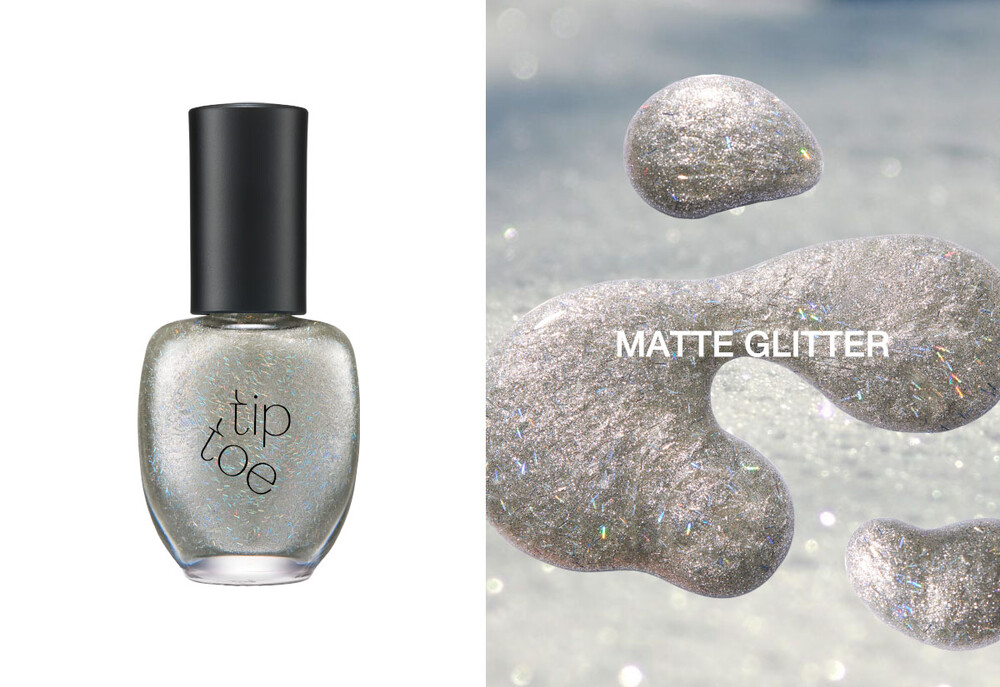 천사가 지나간 듯 반짝이는 눈 쌓인 평원을 닮은 컬러입니다. 다양한 입자감의 실버 글리터가 은은하게 발색되며 조명이나 햇빛 아래에서 다이아몬드처럼 눈부시게 반사됩니다. 팁토우에서 처음 선보이는 매트 글리터의 오묘한 광택감을 경험해 보세요.