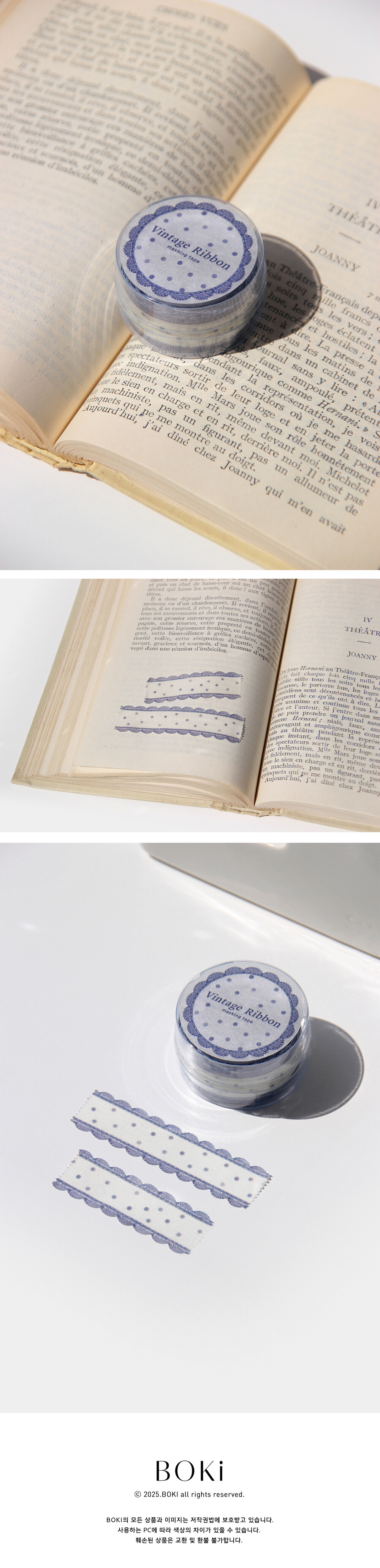 BOKi - Vintage Ribbon Die-cut Masking Tape [Navy Dot]