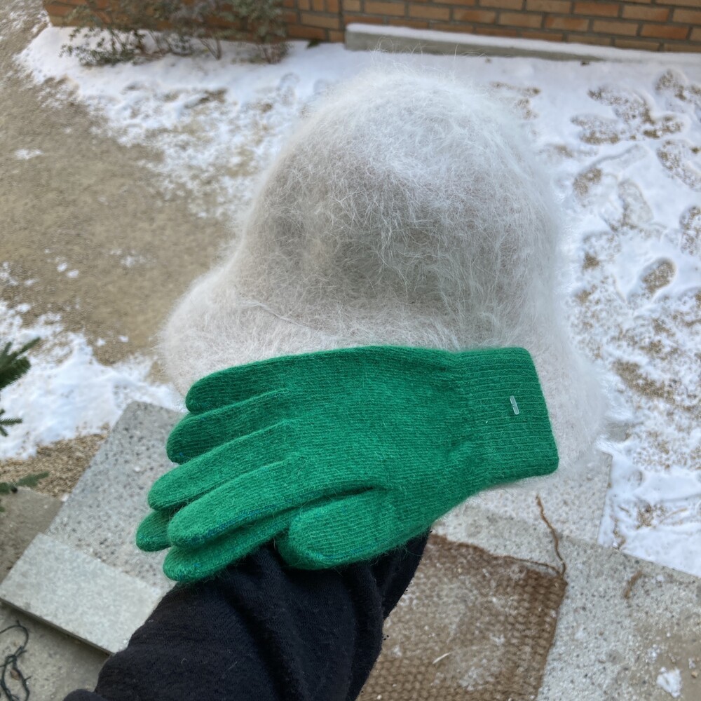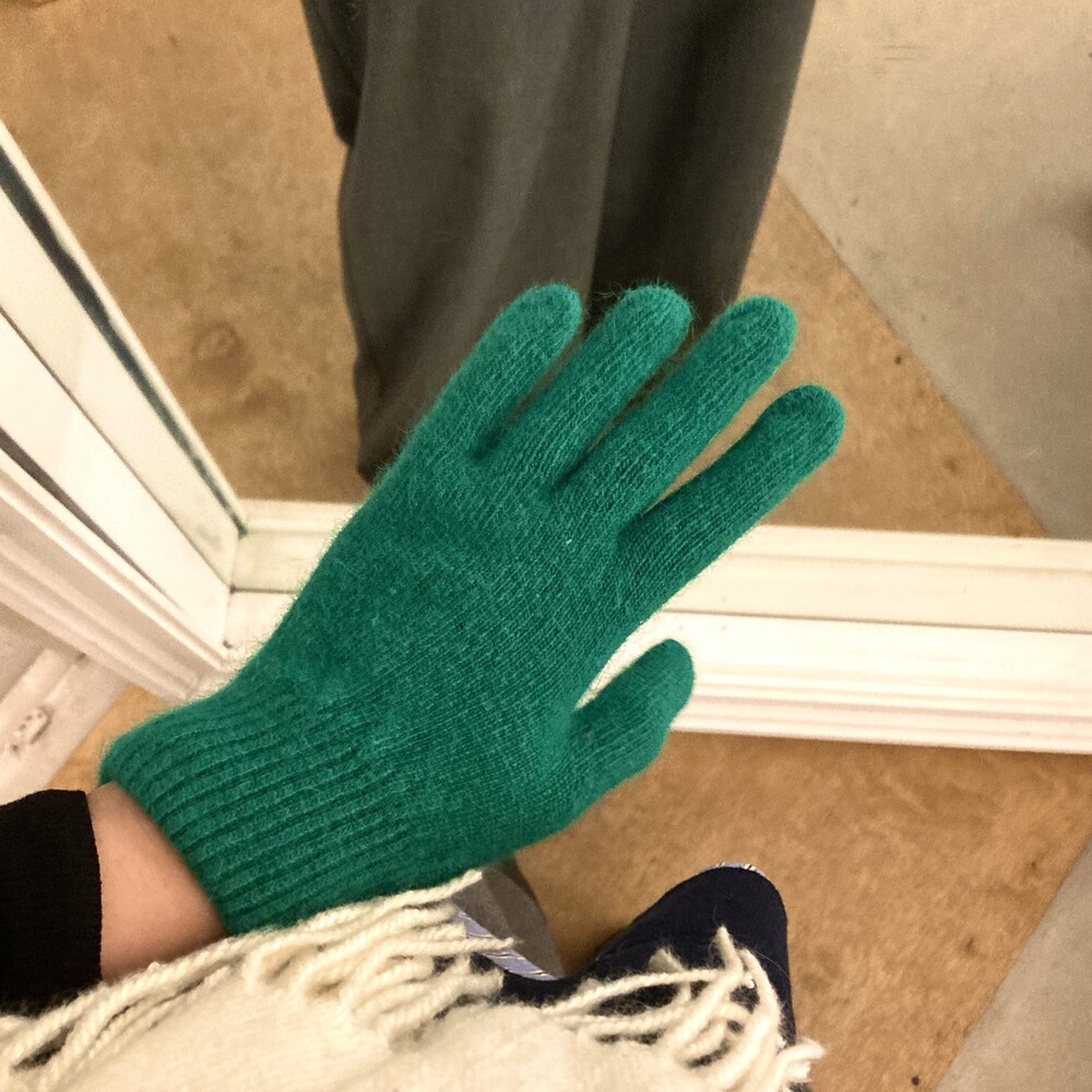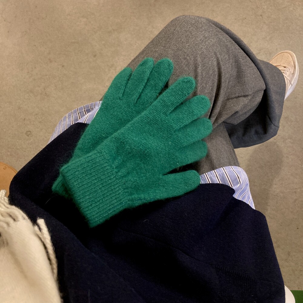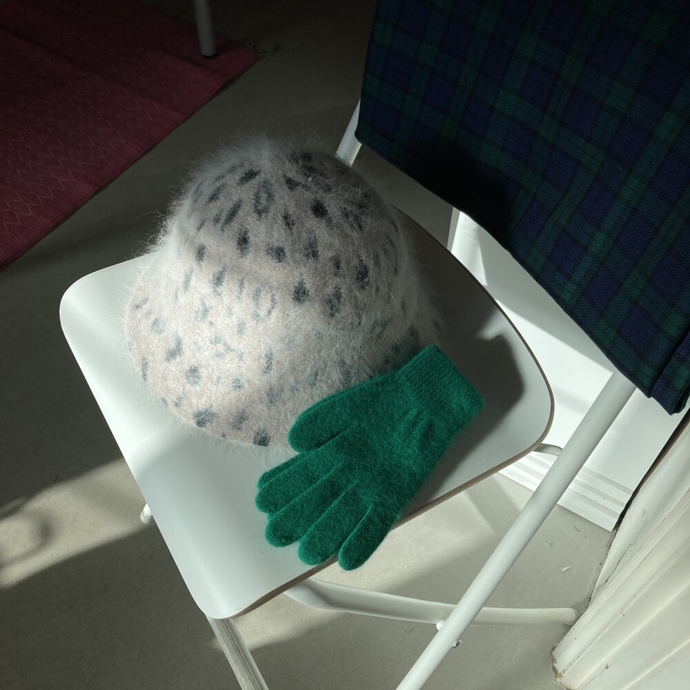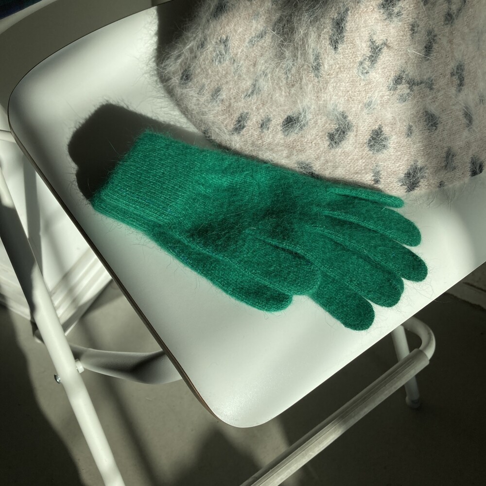 눈과 잘 어울리는 컬러감의 그린 색상의 앙고라 글로브입니다.