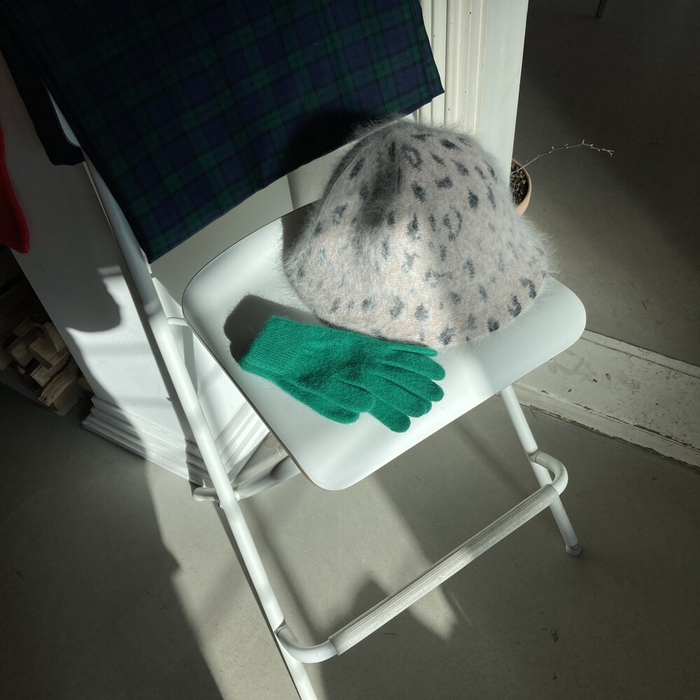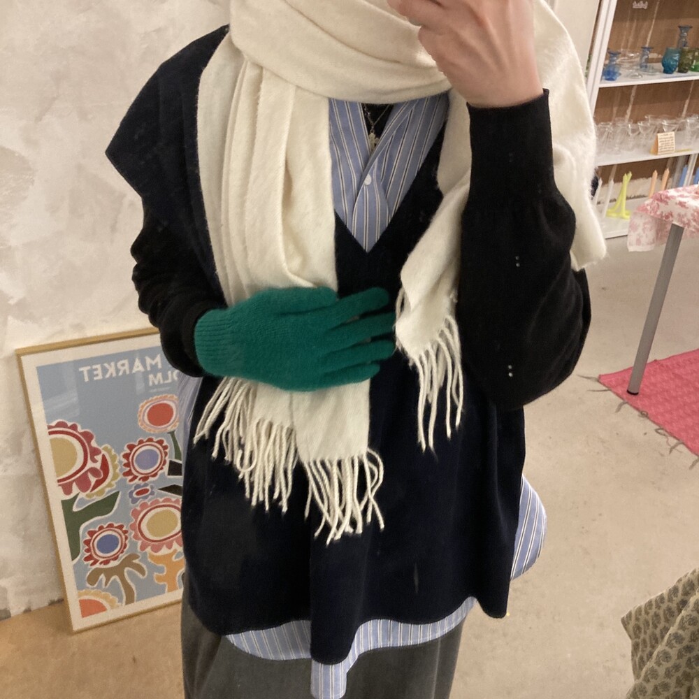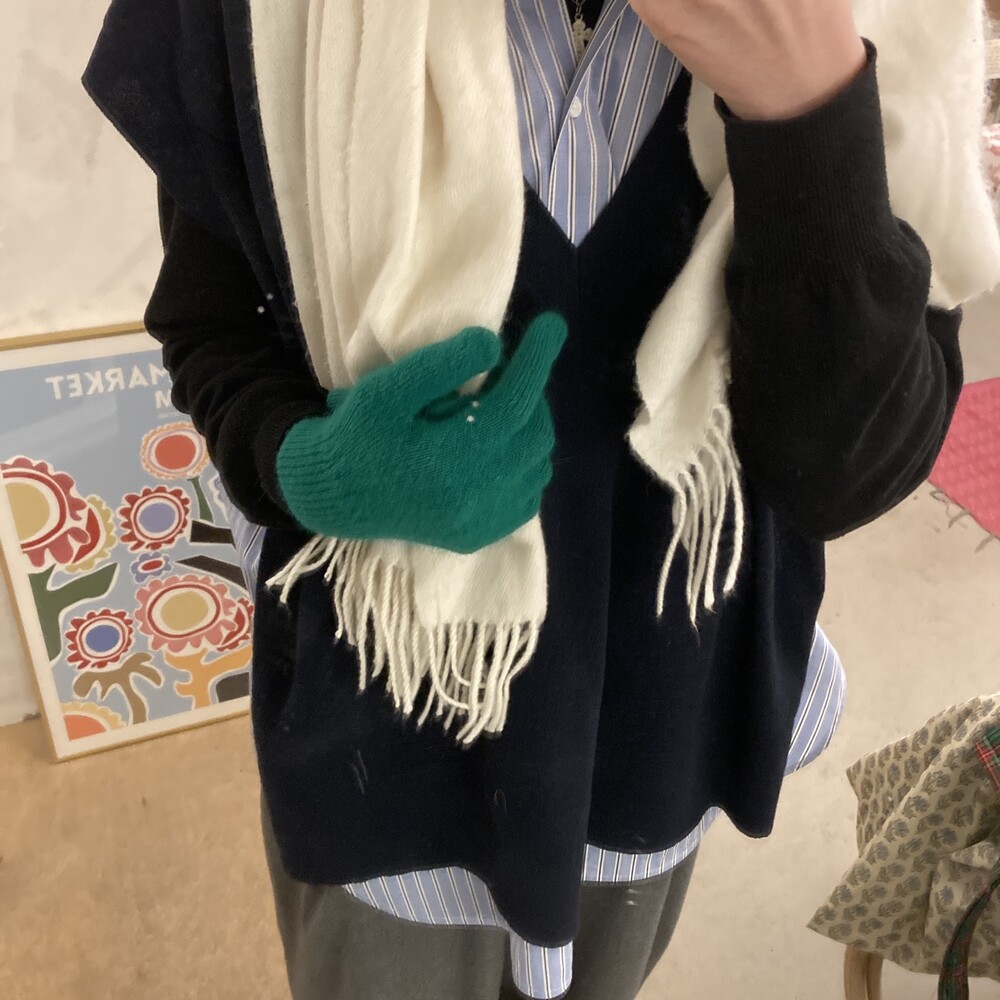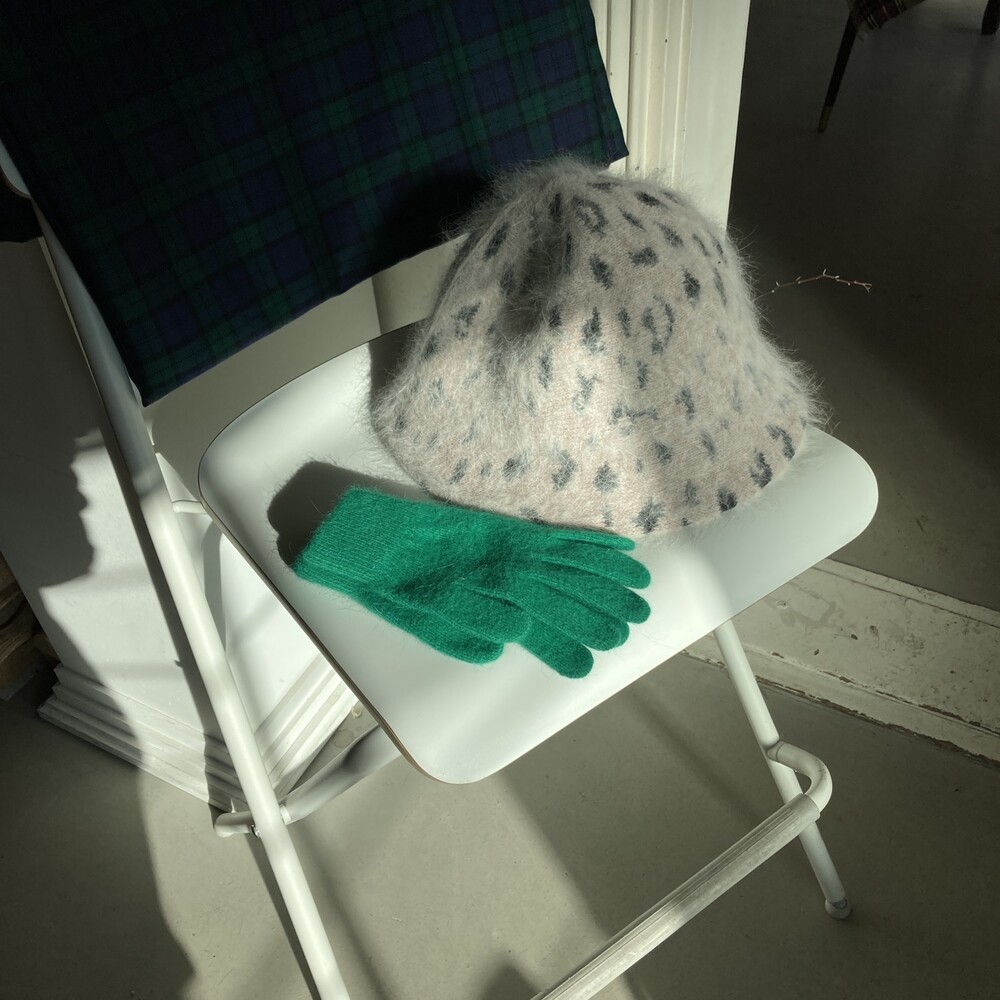 눈과 잘 어울리는 컬러감의 그린 색상의 앙고라 글로브입니다.