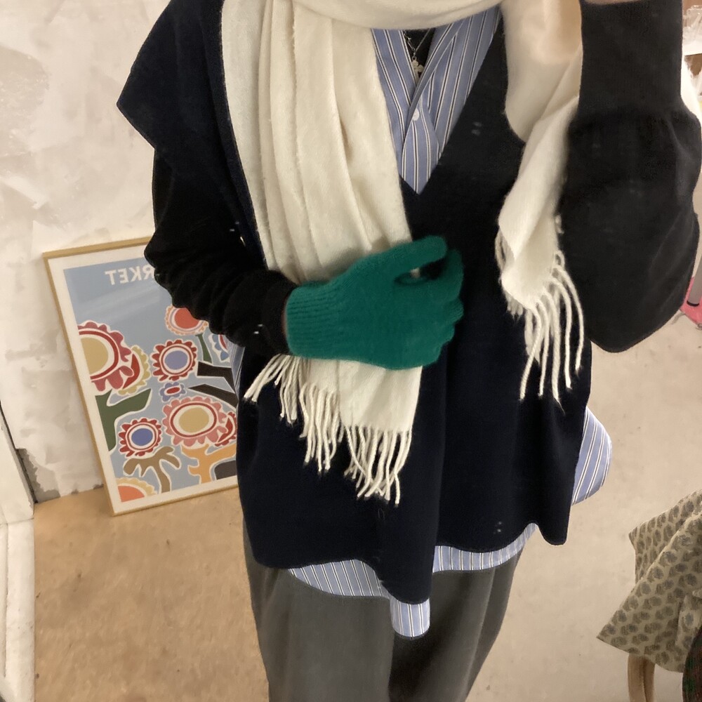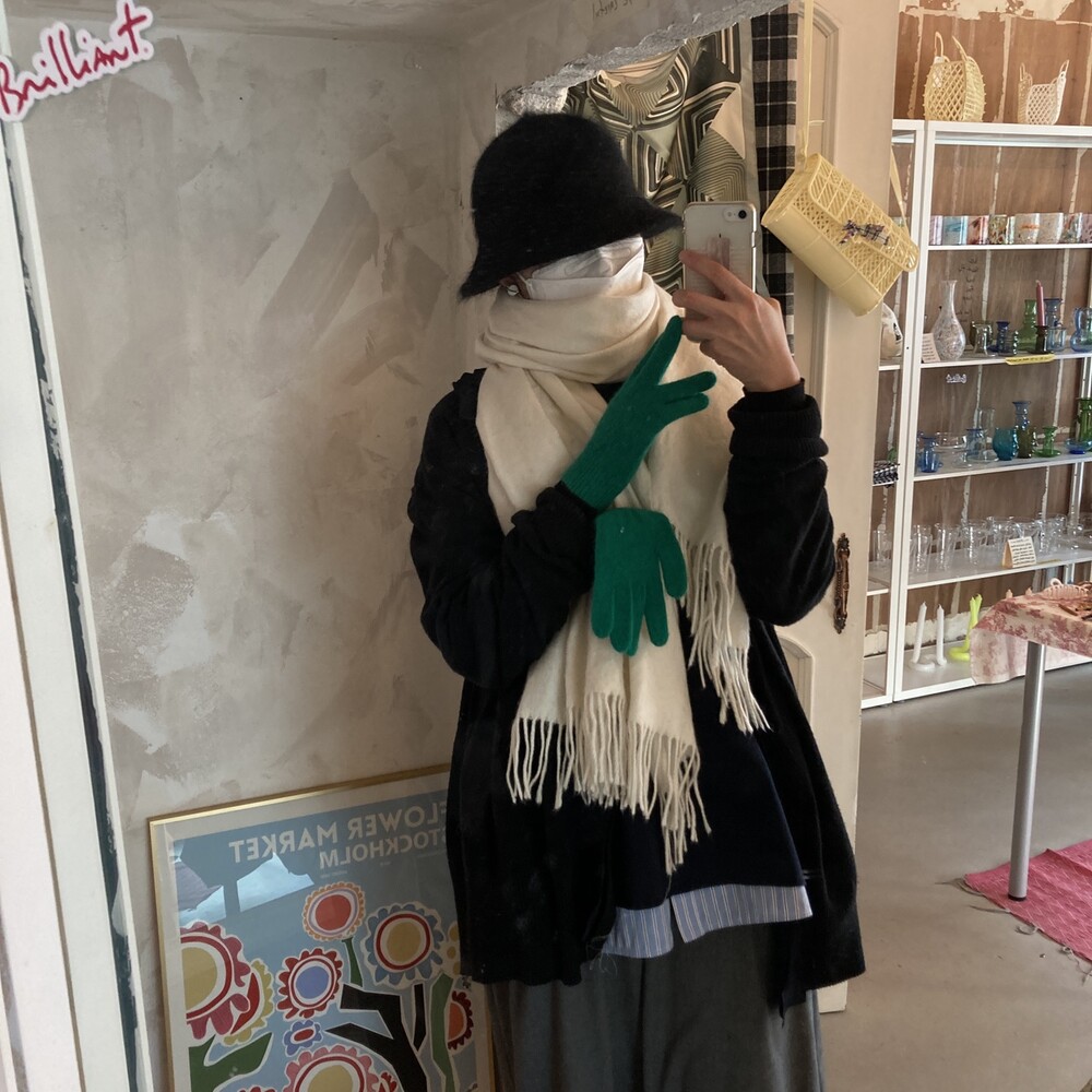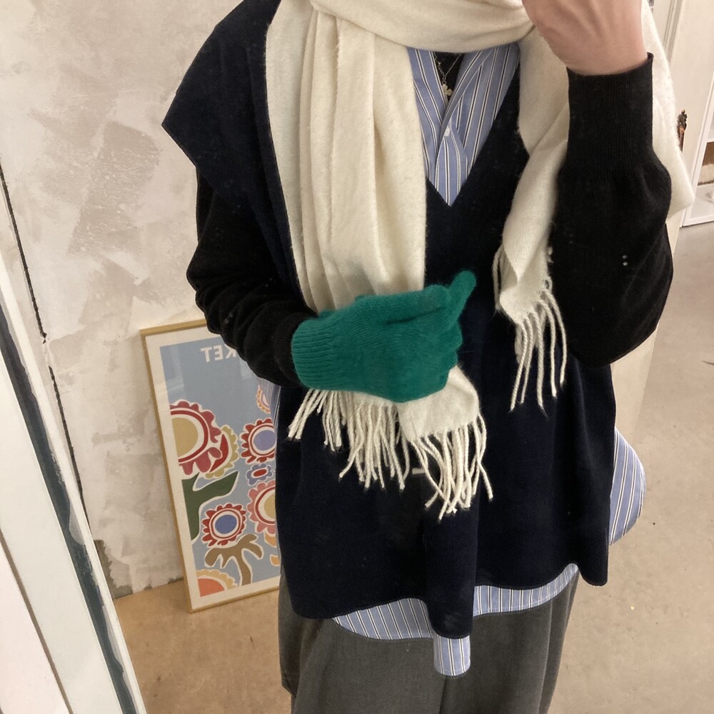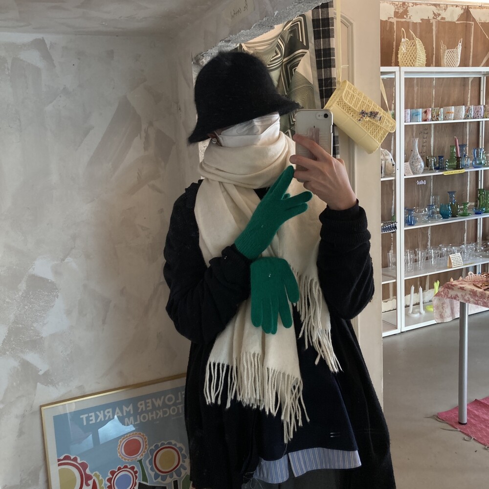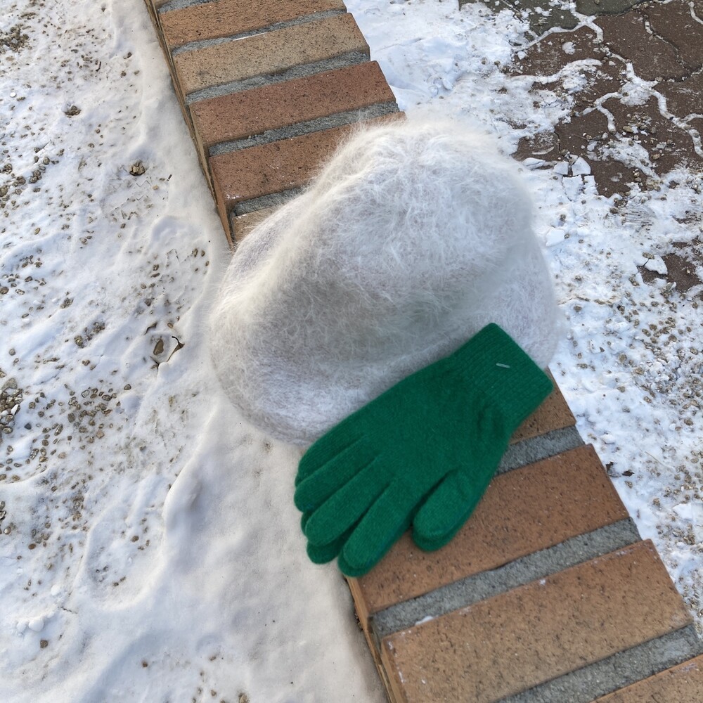 눈과 잘 어울리는 컬러감의 그린 색상의 앙고라 글로브입니다.