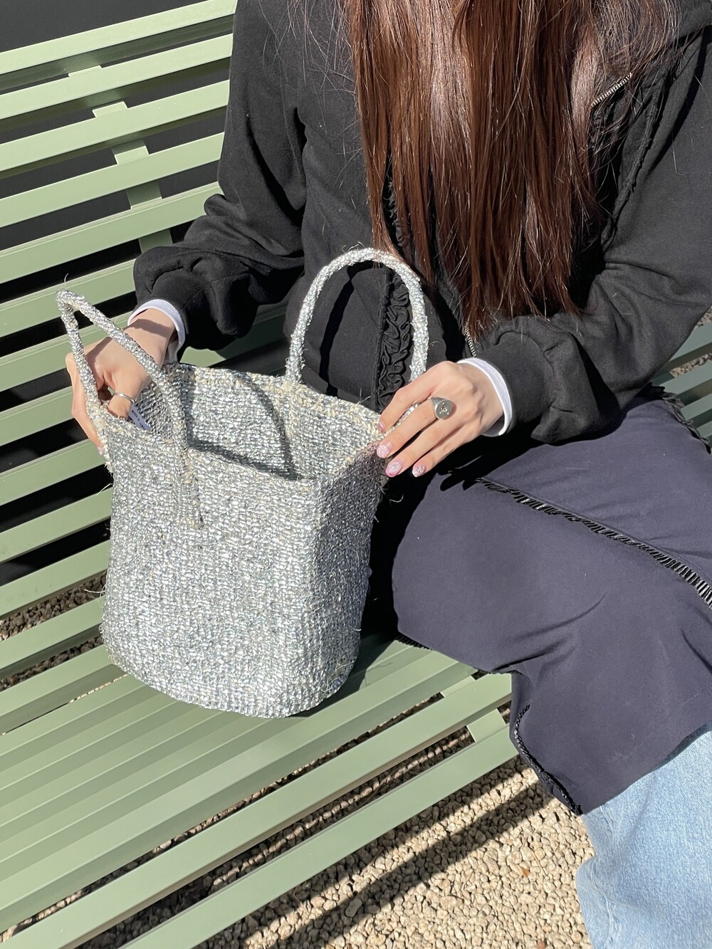 AFRICAN SQUARE - Sisal Bag 9inch (Silver)