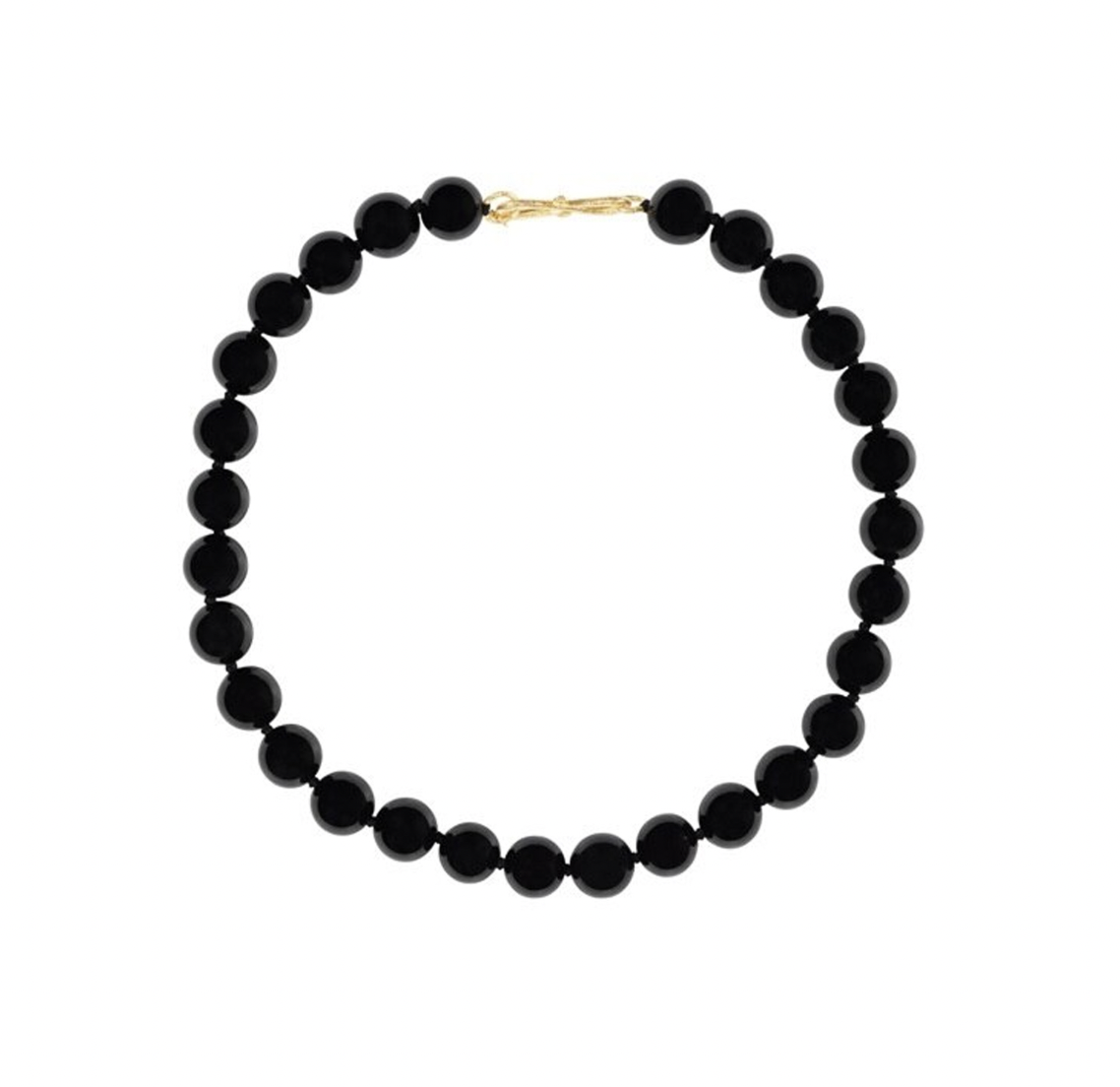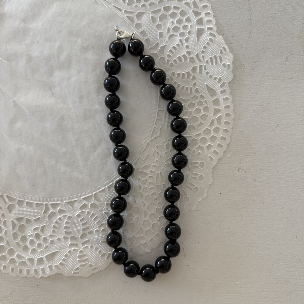 *Material : black agate beads with a silver 18ct gold plated clasp and blue Chalcedony droplet fastening