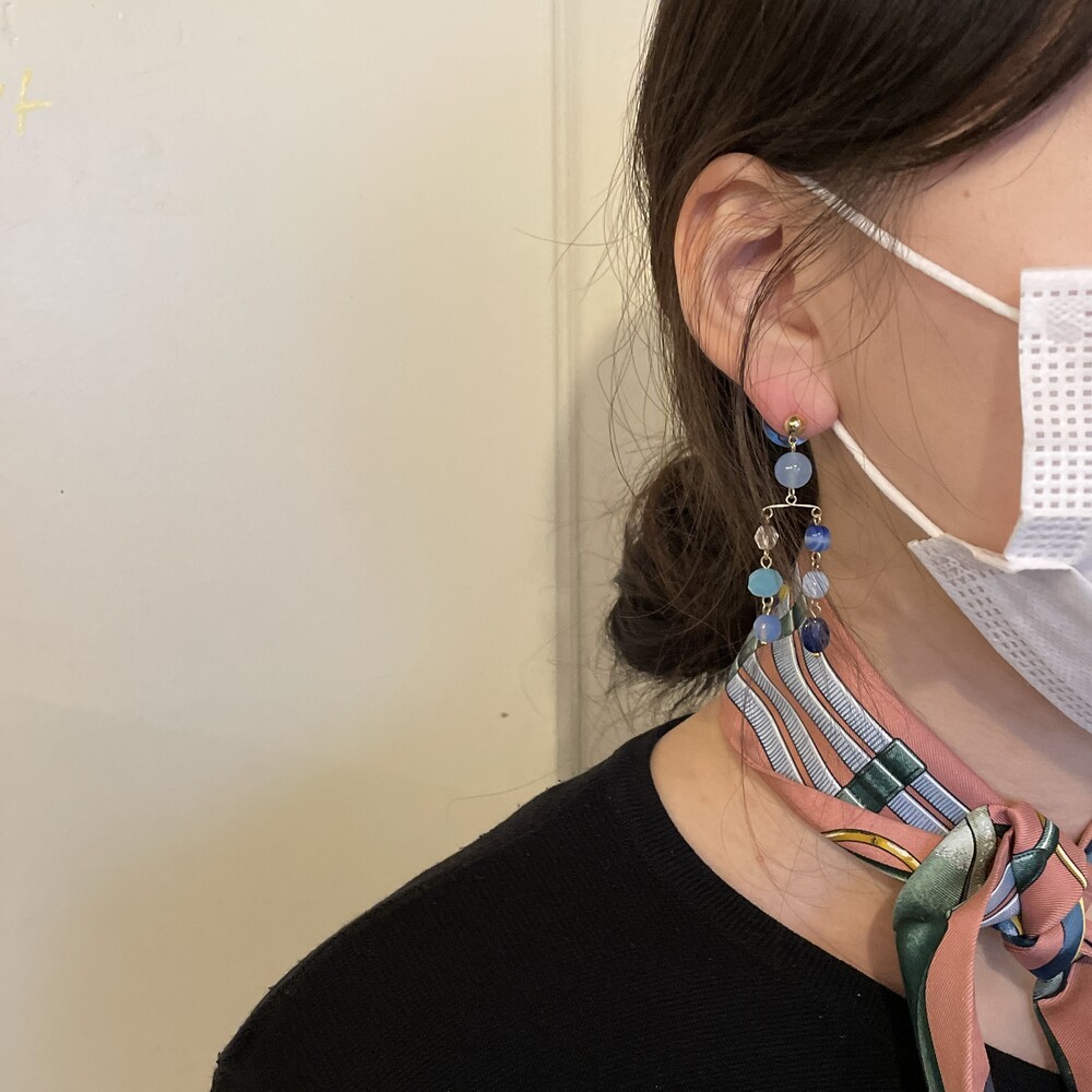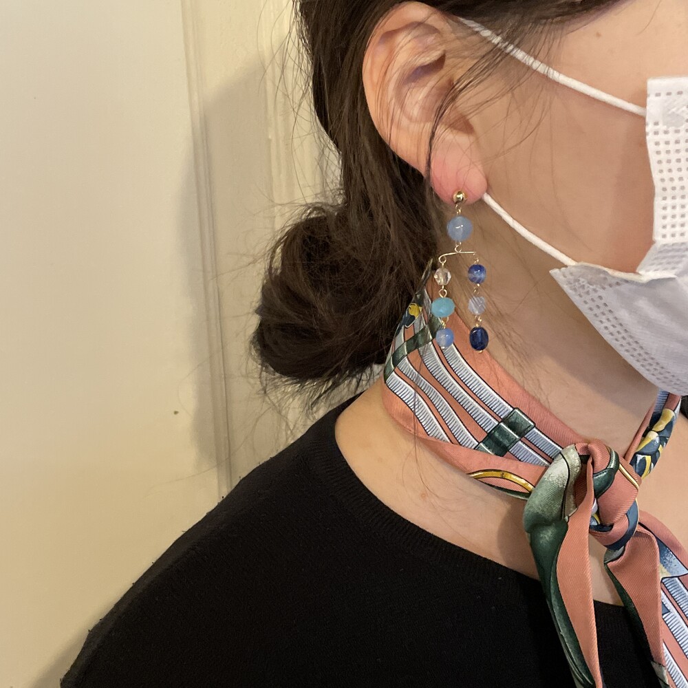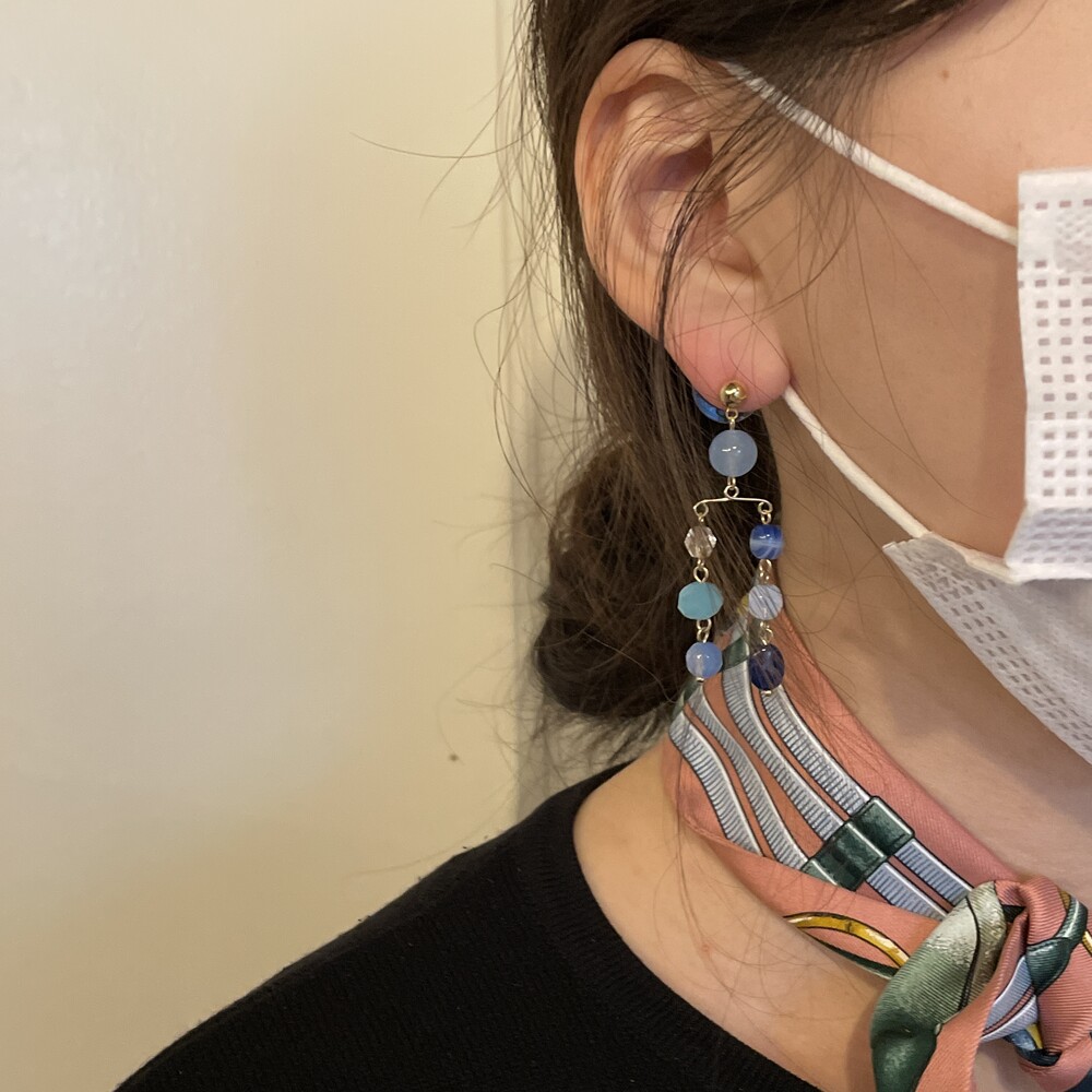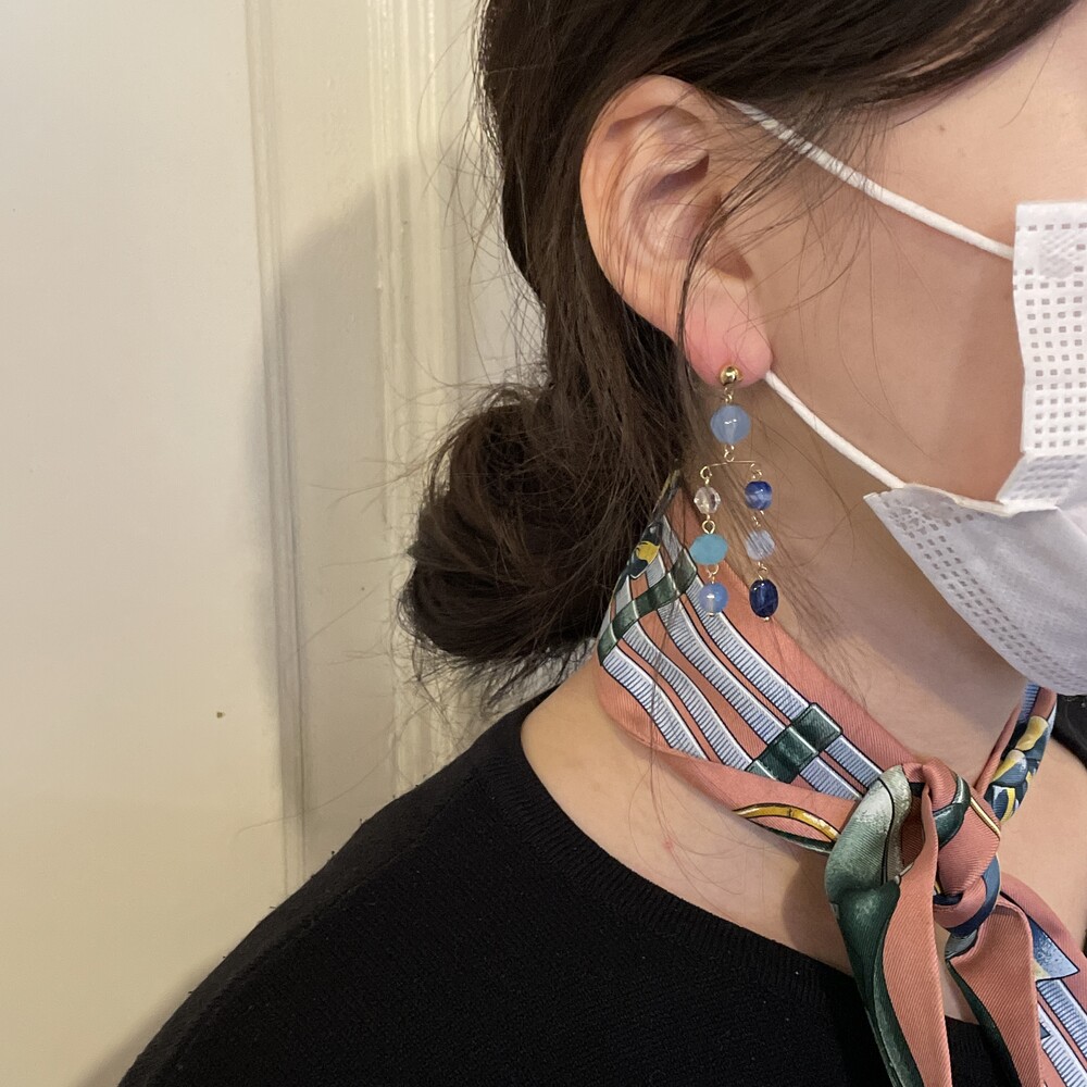 다양한 크리스탈과 원석 구슬들로 만들어진 귀걸이입니다.