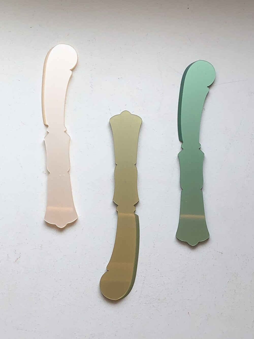 좌측부터, Serving spoon - Tea spoon - Espresso spoon - Spreader - Cake fork 입니다.