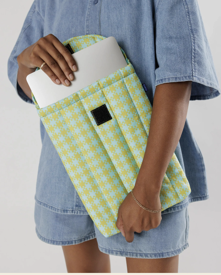 Baggu - Puffy Laptop Sleeve (Mint Pixel Gingham)