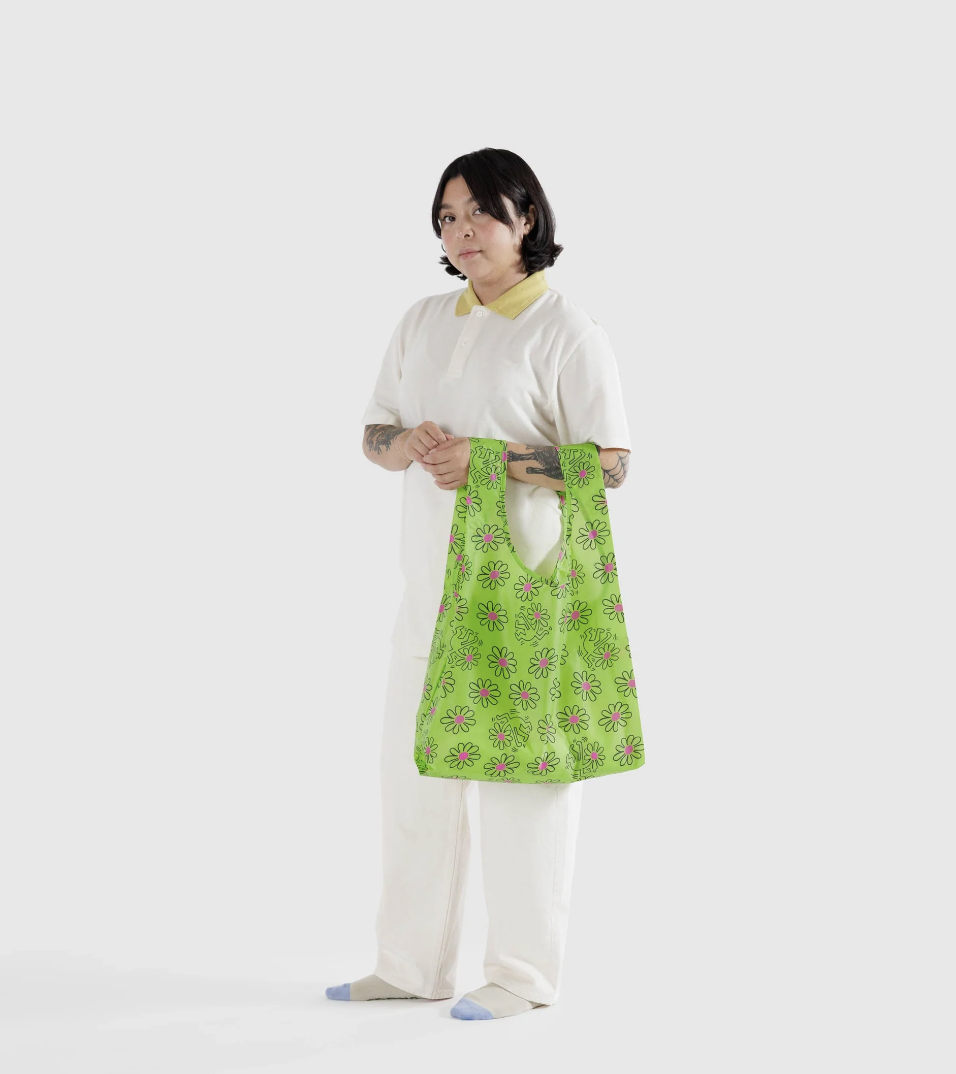 바쿠백은 비닐 봉투의 형태로 만들어져 견고하고 가벼우며 기존 에코백보다 많은 양을 물건을 넣을 수 있습니다.