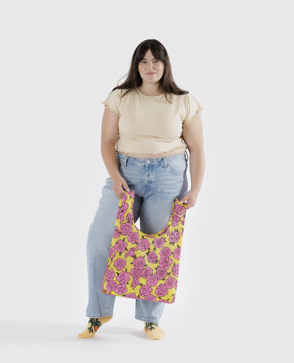 바쿠백은 비닐 봉투의 형태로 만들어져 견고하고 가벼우며 기존 에코백보다 많은 양을 물건을 넣을 수 있습니다.
