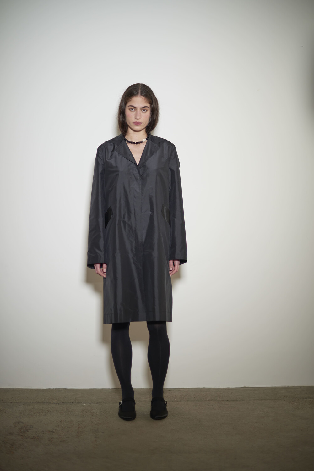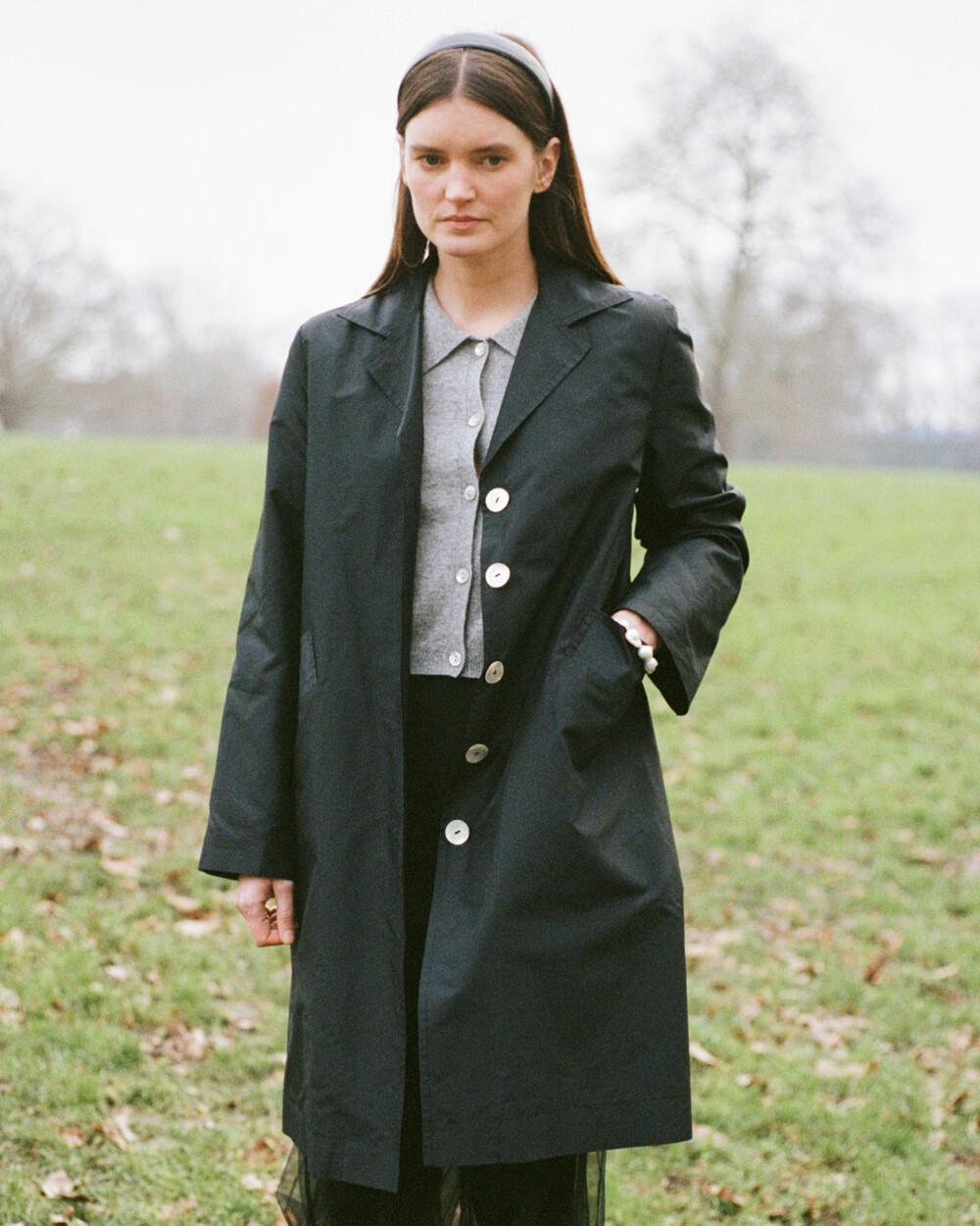 하이에서 처음 선보이는 타페타 실크로 제작된 Bailey Coat 는 원단 특유의 은은한 광택과 싸개 단추 디테일로 유니크함을 더했습니다. 선선한 바람이 불어오는 계절에 가볍게 걸쳐주시기 좋은 제품입니다.