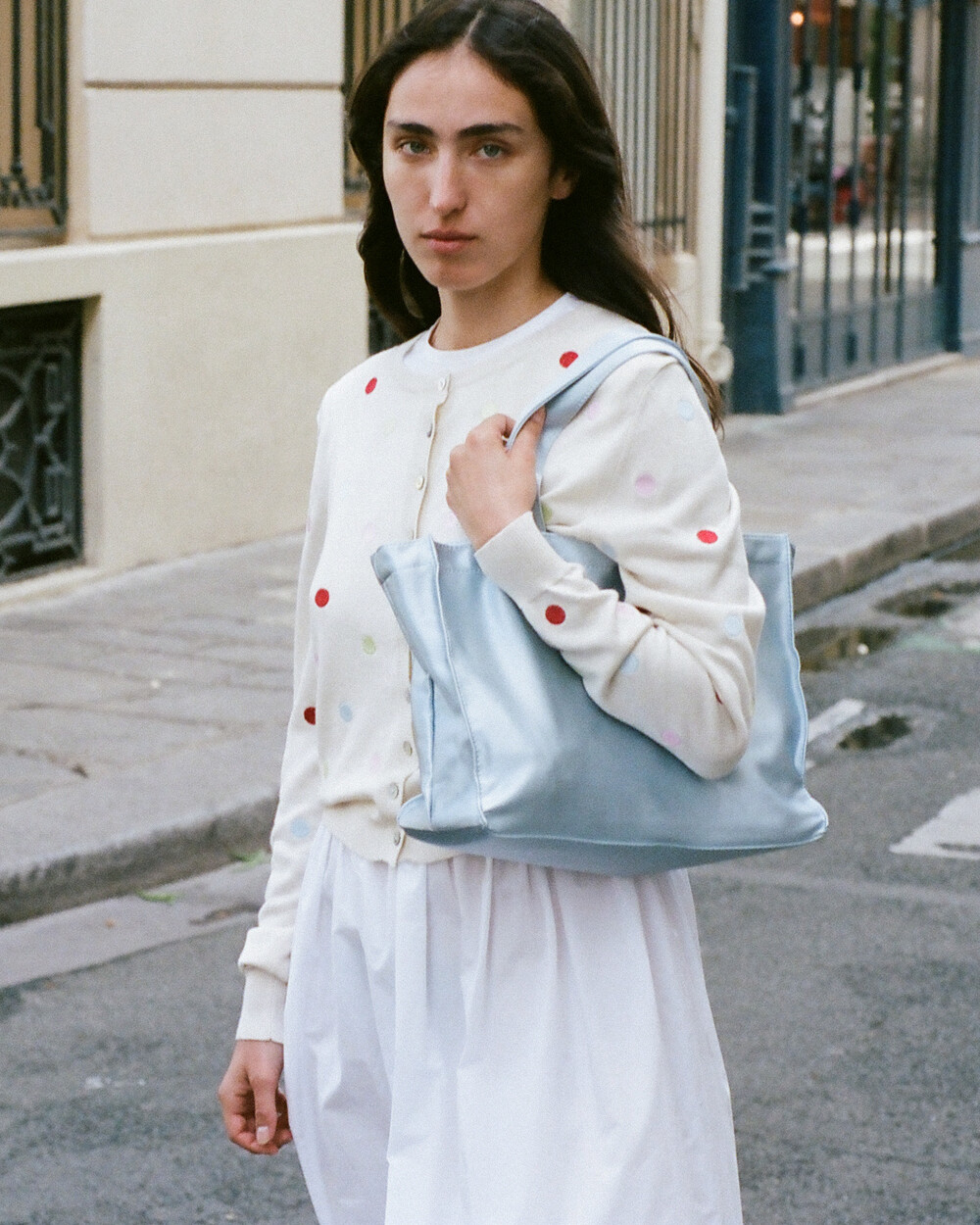 베르나데트 백은 일상에 필요한 소지품을 편안하게 수납할 수 있도록 디자인되었습니다.부드러운 새틴 실크 소재로 제작되었으며, 내부 리본 스트랩 여밈 디테일로 자연스럽고 실용적인 마무리를 더했습니다.