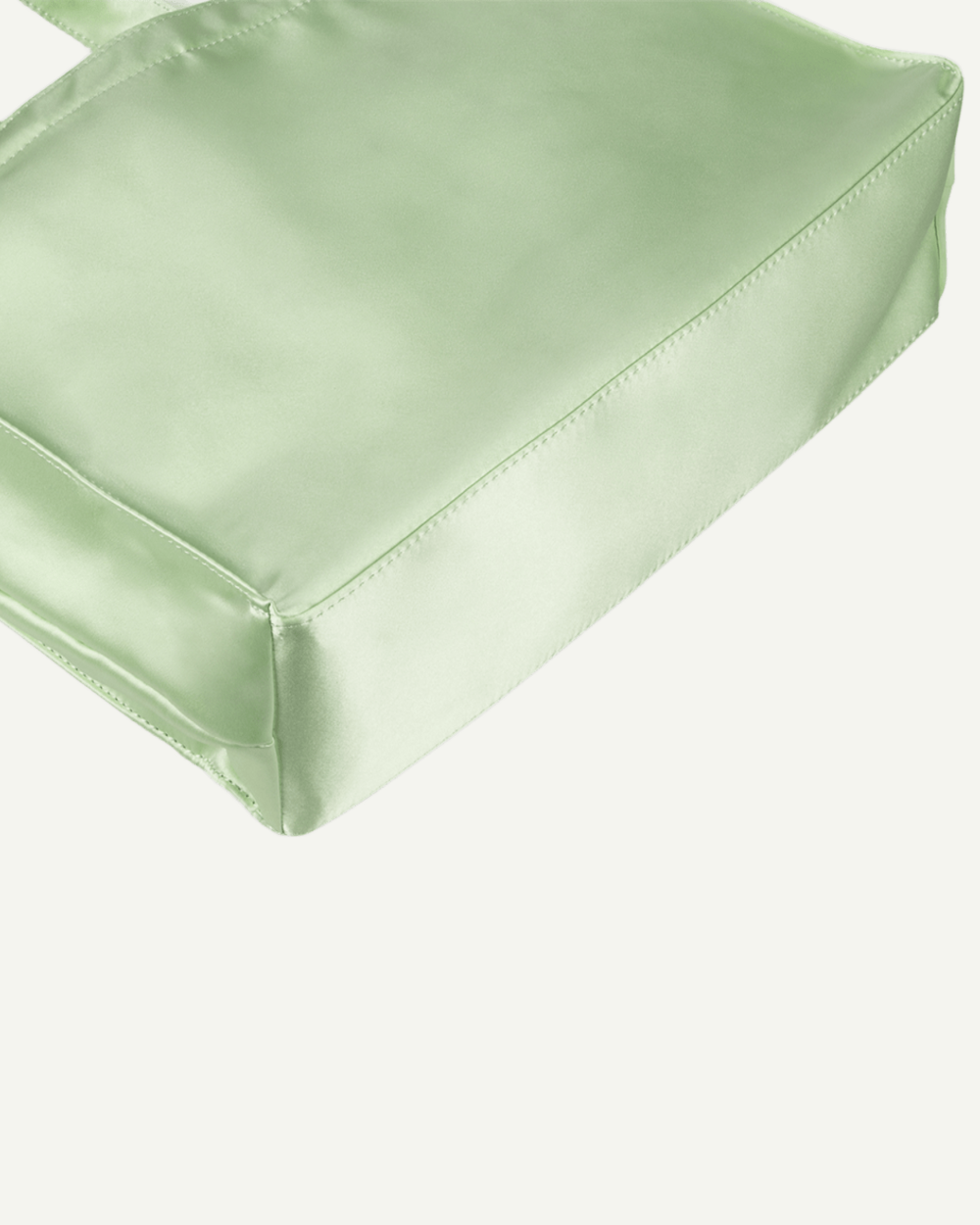 베르나데트 백은 일상에 필요한 소지품을 편안하게 수납할 수 있도록 디자인되었습니다.부드러운 새틴 실크 소재로 제작되었으며, 내부 리본 스트랩 여밈 디테일로 자연스럽고 실용적인 마무리를 더했습니다.
