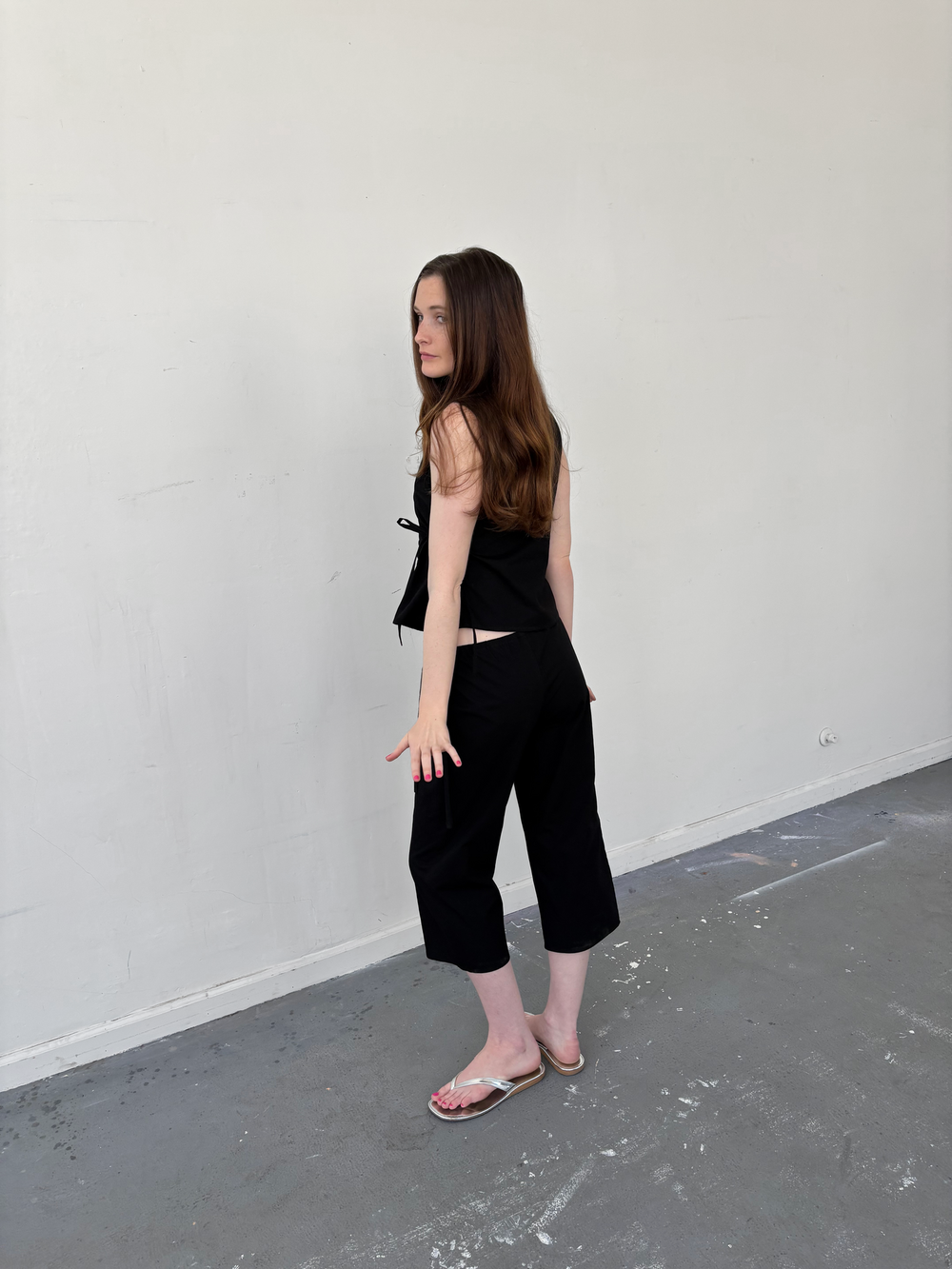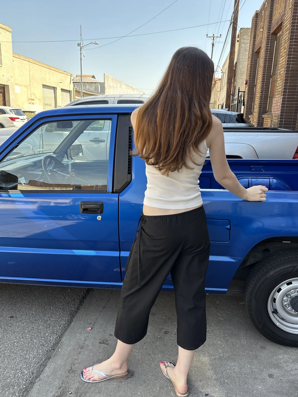 • 신축성이 강하지 않은 100% 면 포플린 원단으로 제작되었습니다. 끈을 통해 허리를 자유롭게 조절할 수 있습니다.