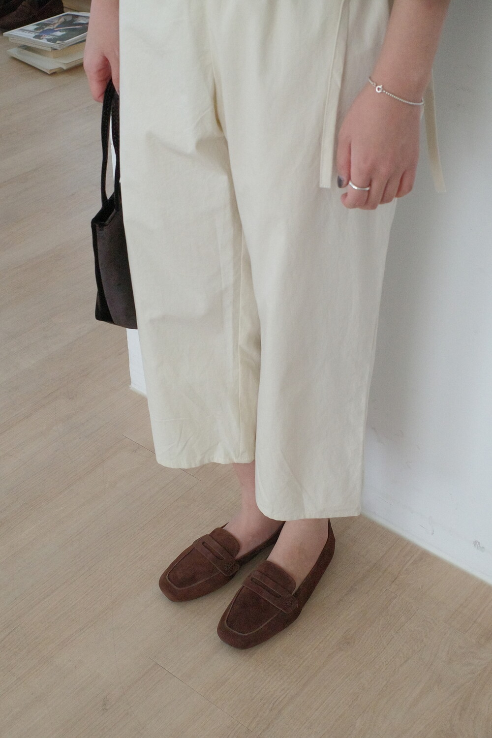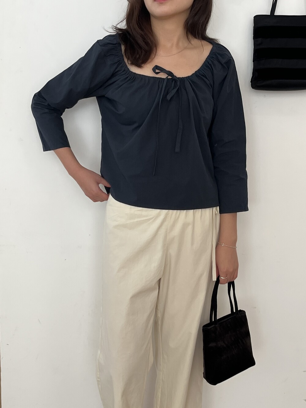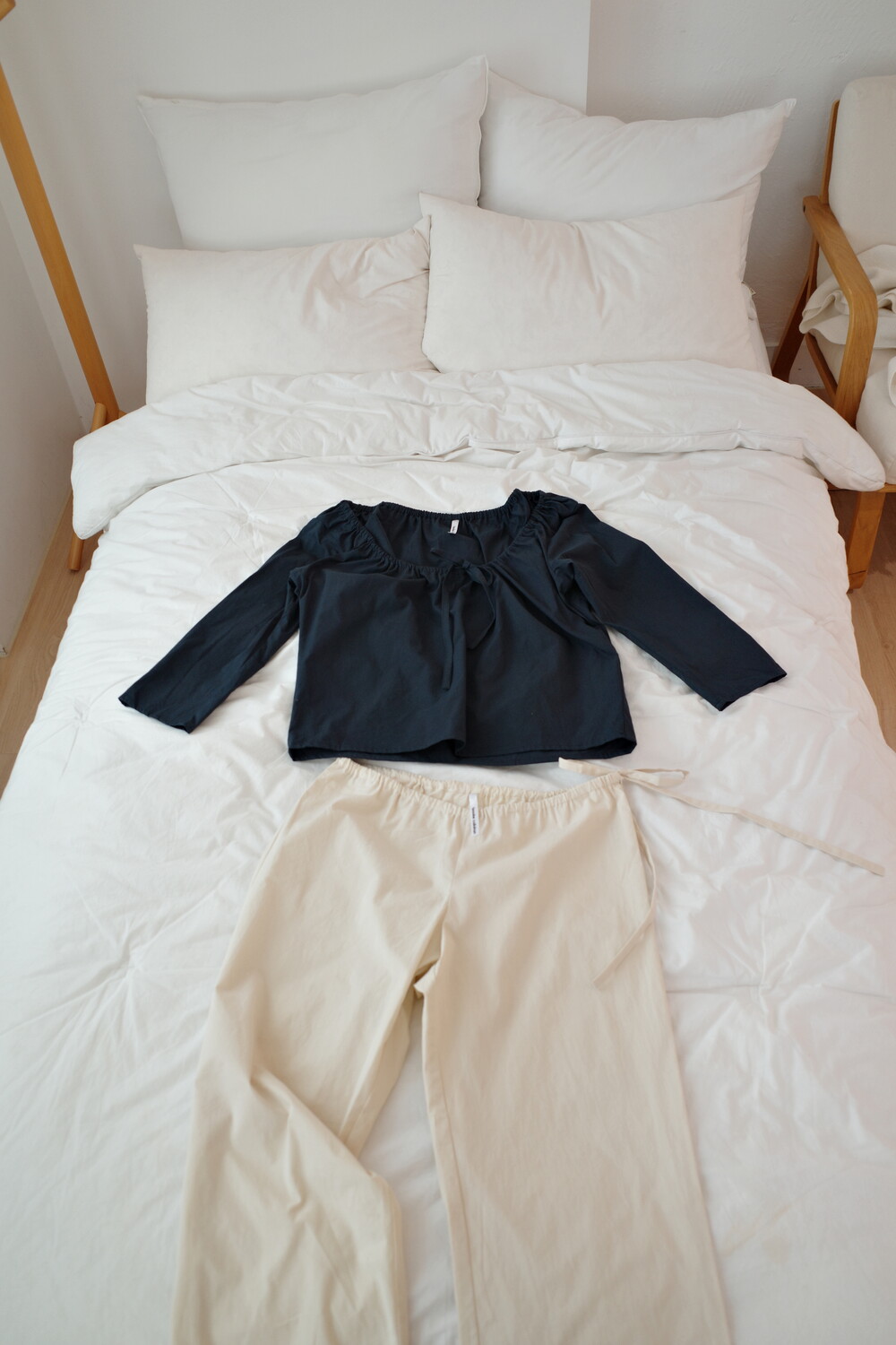• 신축성이 강하지 않은 100% 면 포플린 원단으로 제작되었습니다. 끈을 통해 허리를 자유롭게 조절할 수 있습니다.